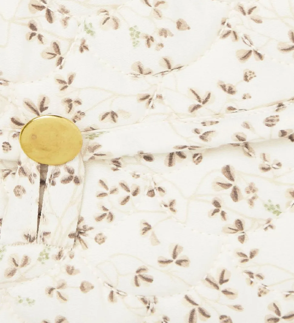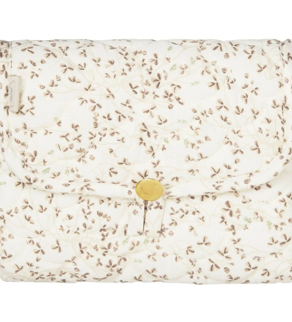 Flot Cam Cam Copenhagen pusleunderlag i beige, med blomster i brune nuancer over det hele. Den har også et flot quilted design.