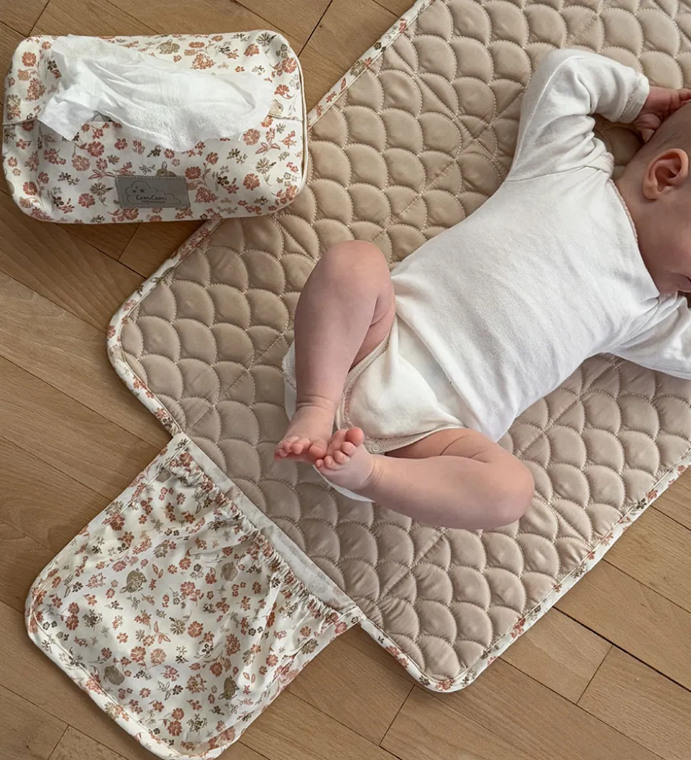 Cam Cam Copenhagen pusleunderlaget kan nemt foldes sammen med én hånd til en praktisk størrelse, så den er nem at have med i pusletasken. Underlaget er perfekt til skiftesituationer, når du er ude af huset, hvor du har brug for et blødt underlag til den lille.