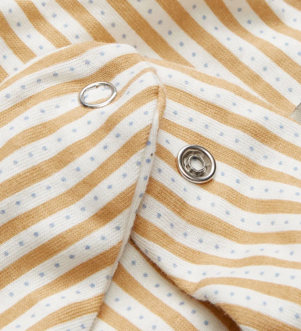 Dejlige Cam Cam Copenhagen savlesmække solgt i en 2-pak med lysebrune og hvide striber samt lyseblå, små prikker.