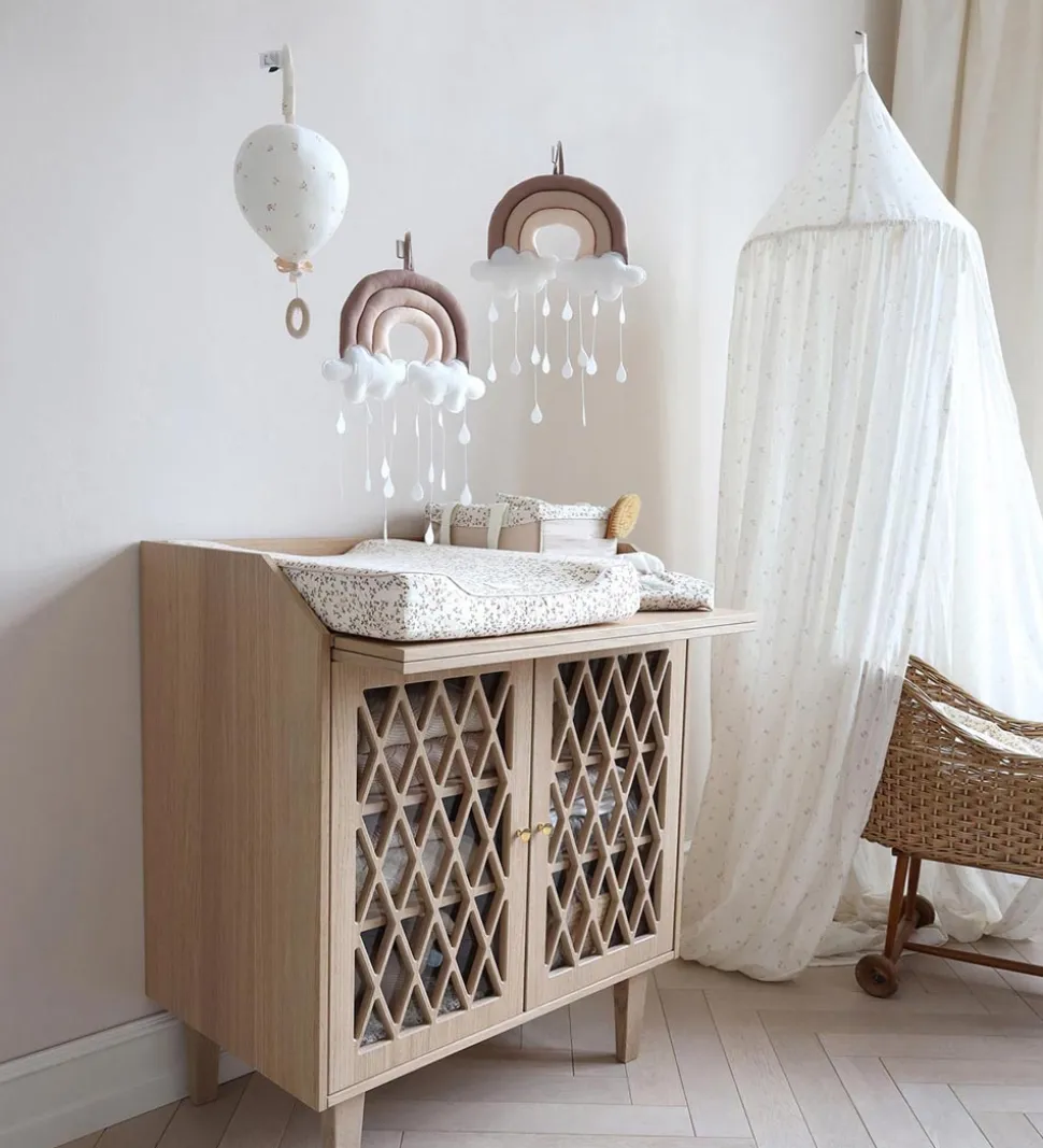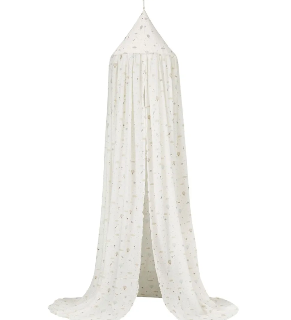 Cam Cam Copenhagen sengehimlen kan skabe en rigtig fin hyggekrog på børneværelset. Den har en metalring øverst, så den kan hænges op f.eks. over en seng.
