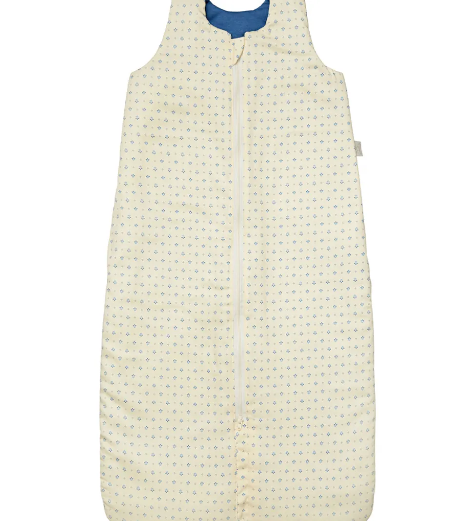 Flot Cam Cam Copenhagen sovepose beige med et alloverprint af fine, små blomster i blå nuancer.