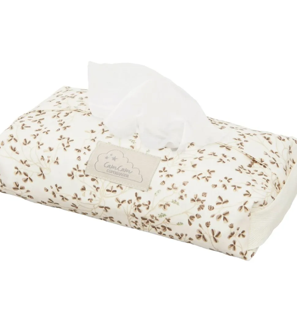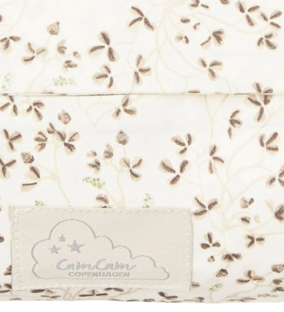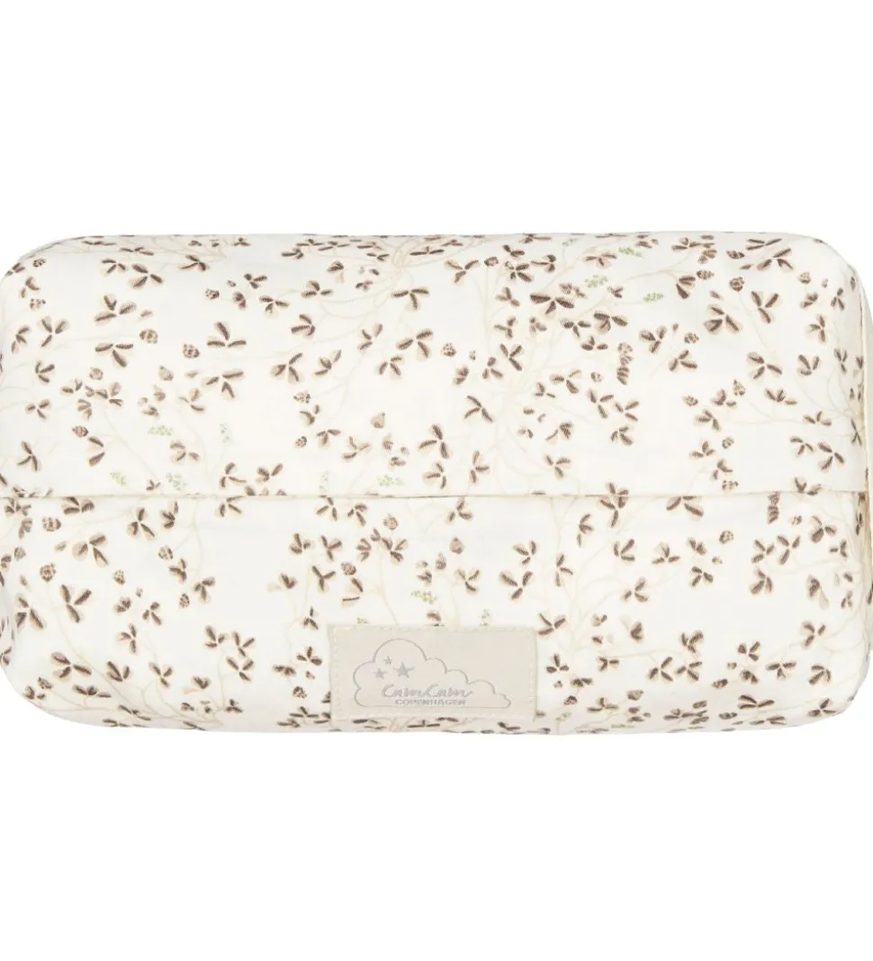 Skøn Cam Cam Copenhagen vådserviet etui i beige, med blomster i brune nuancer over det hele.