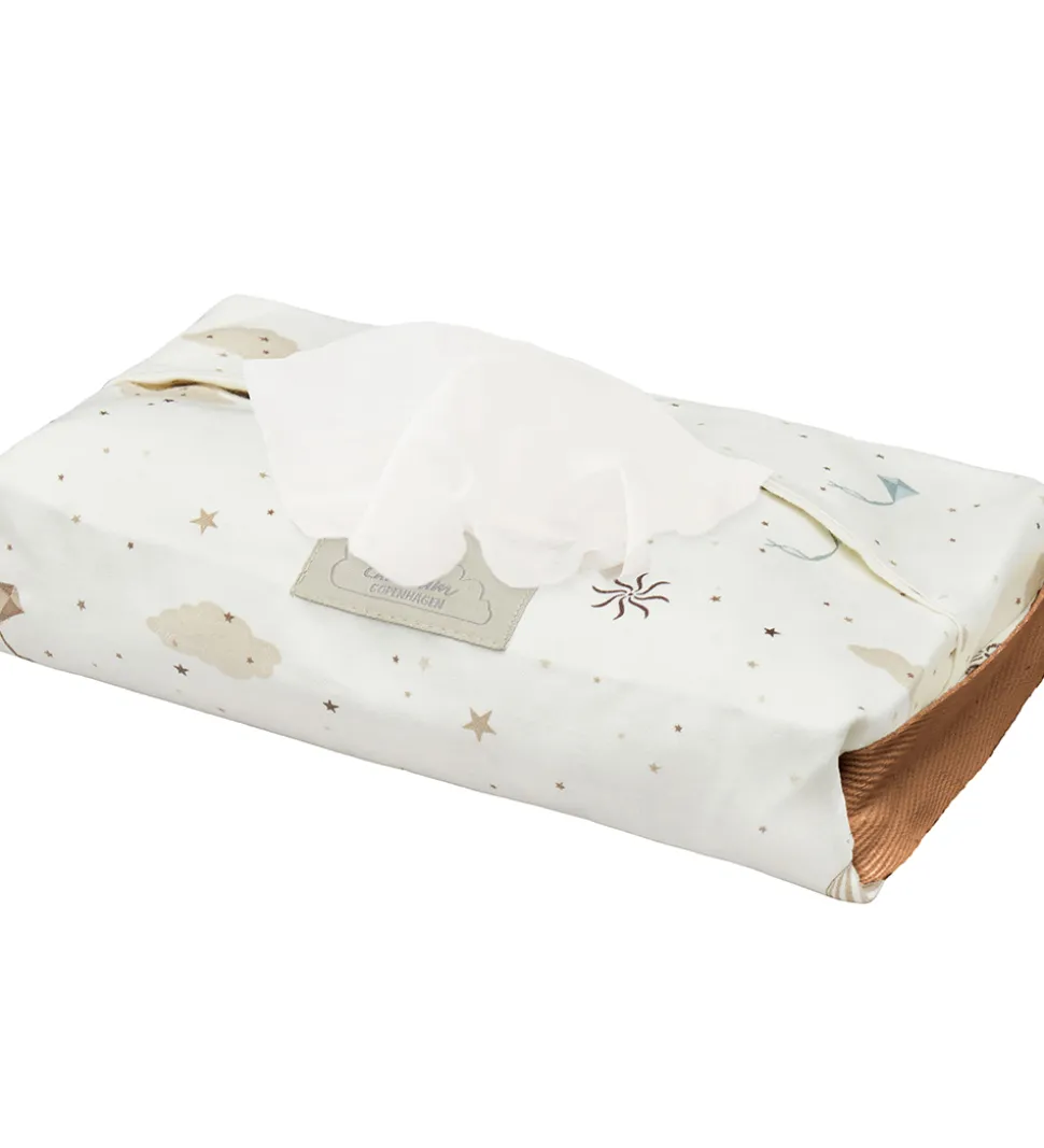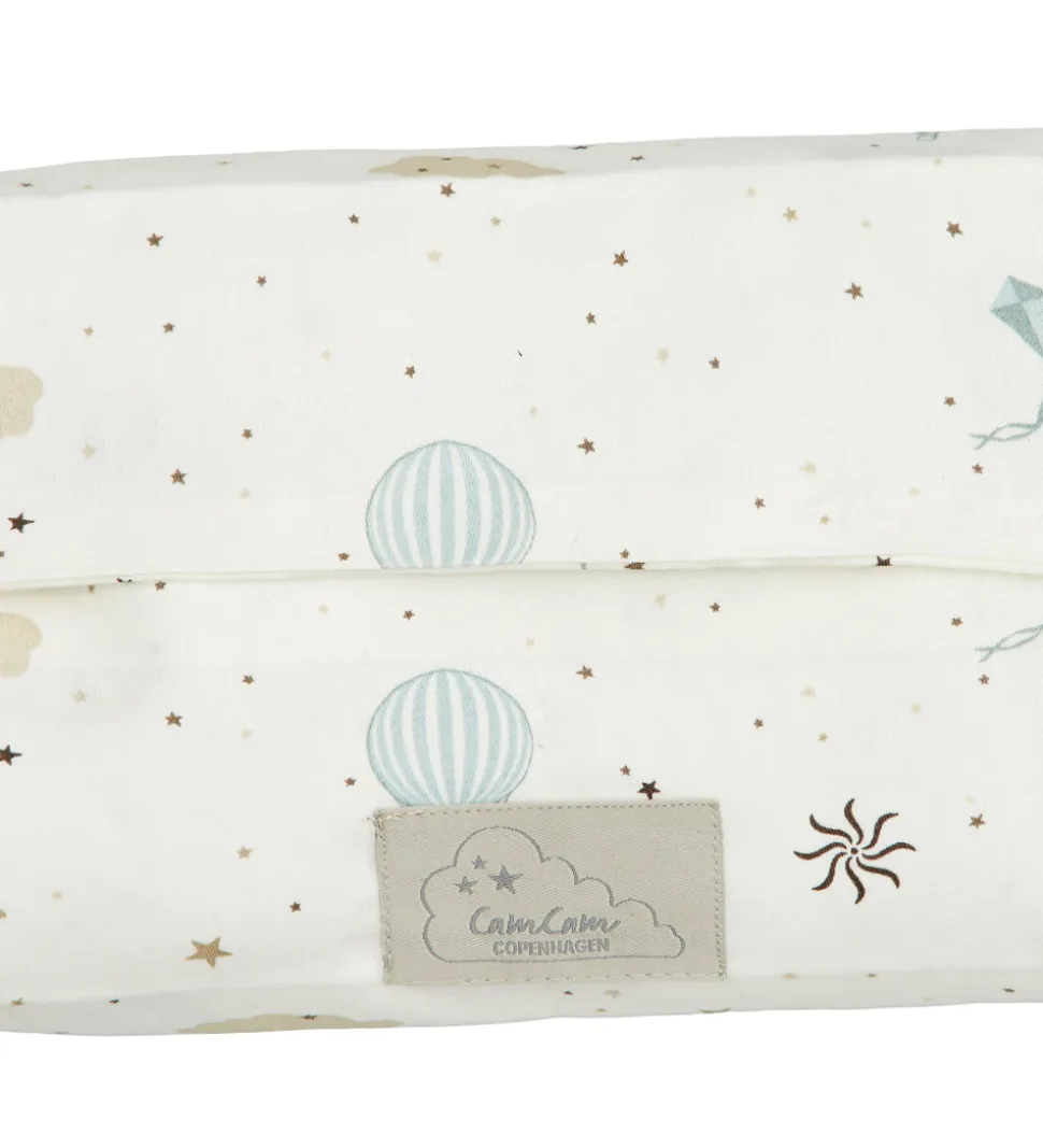 Flot Cam Cam Copenhagen vådserviet etui i hvid med print af stjerner, skyer, luftballoner m.m.