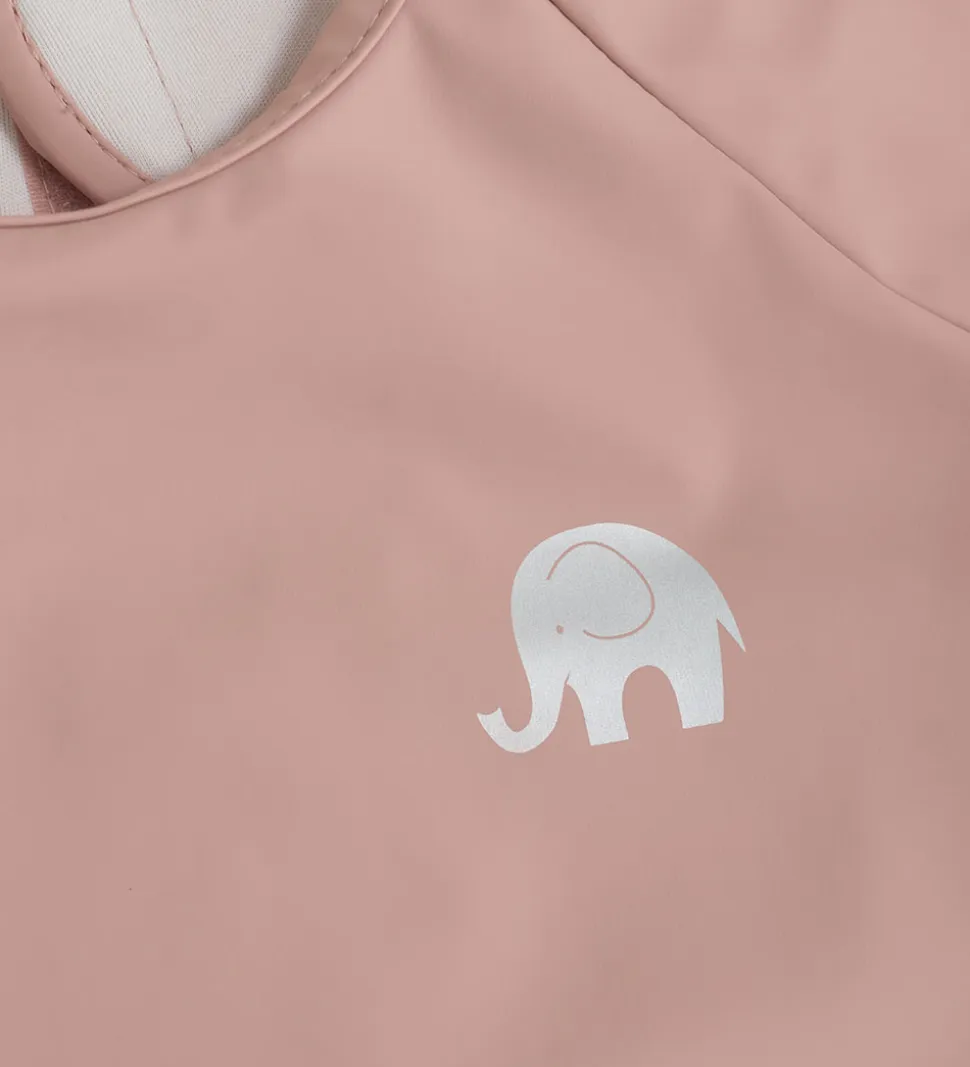 Smart CeLaVi forklæde i støvet rosa med et reflekslogo i venstre side. Forklædet har lange ærmer med elastik ved håndleddene. Det lukkes i nakken med velcro, og nederst er der en praktisk opsamlingslomme. Forklædet har en PU-coating, som gør det vandtæt og let at tørre af.
