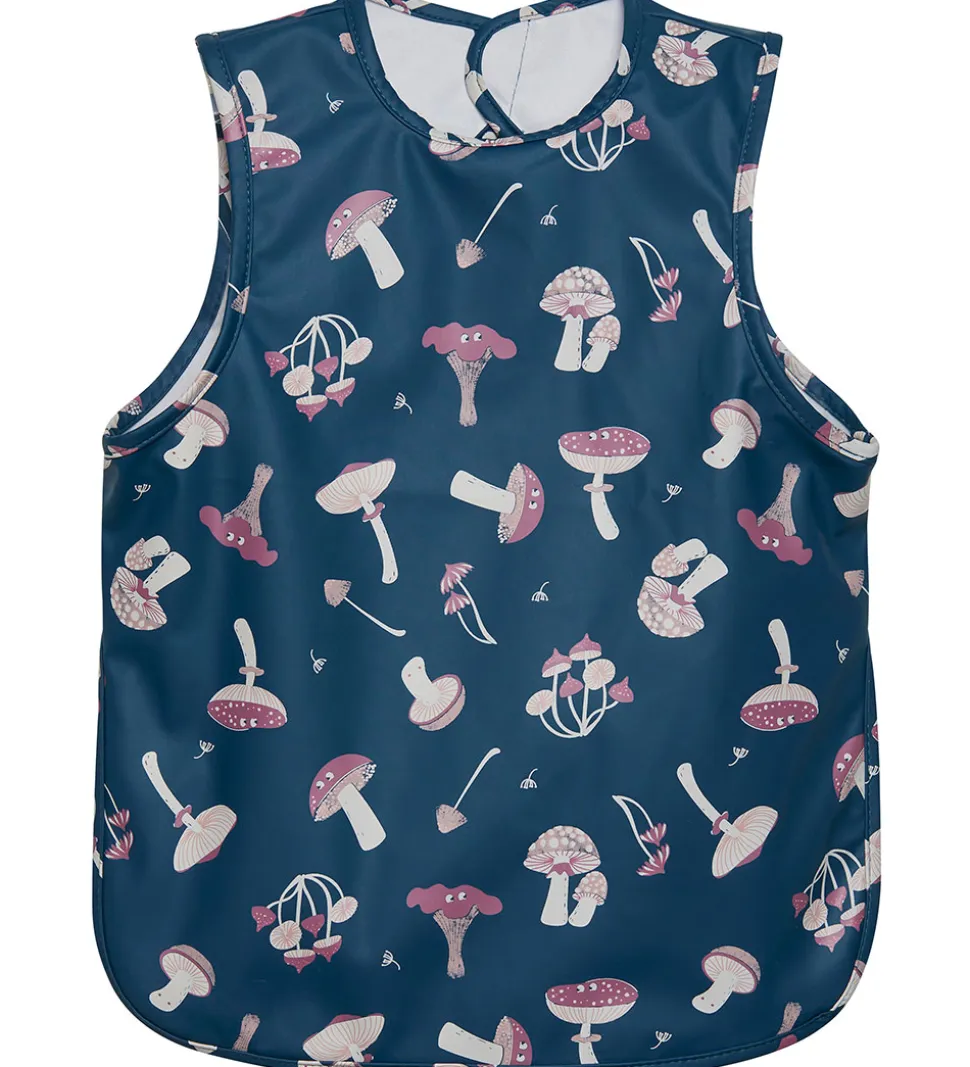 Flot CeLaVi forklæde i petroleumsblå PU med et print af forskellige svampe i mørkrosa og creme.