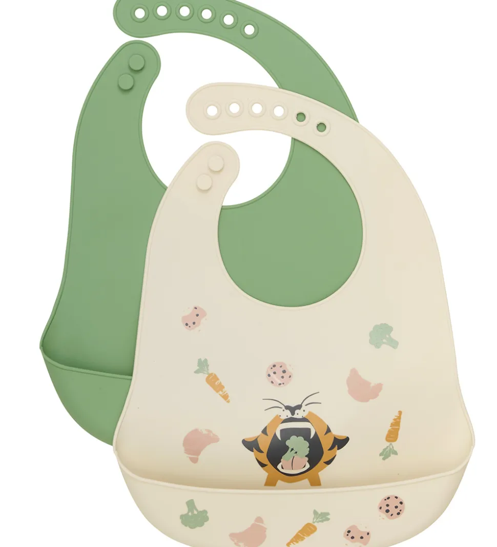 CeLaVi hagesmækkene er lavet af fødevaregodkendt, BPA-fri silikone, og har en spildlomme i bunden, som opsamler madkrummer. Hagesmækkene har en rund form og lukkes med justerbare knapper.
