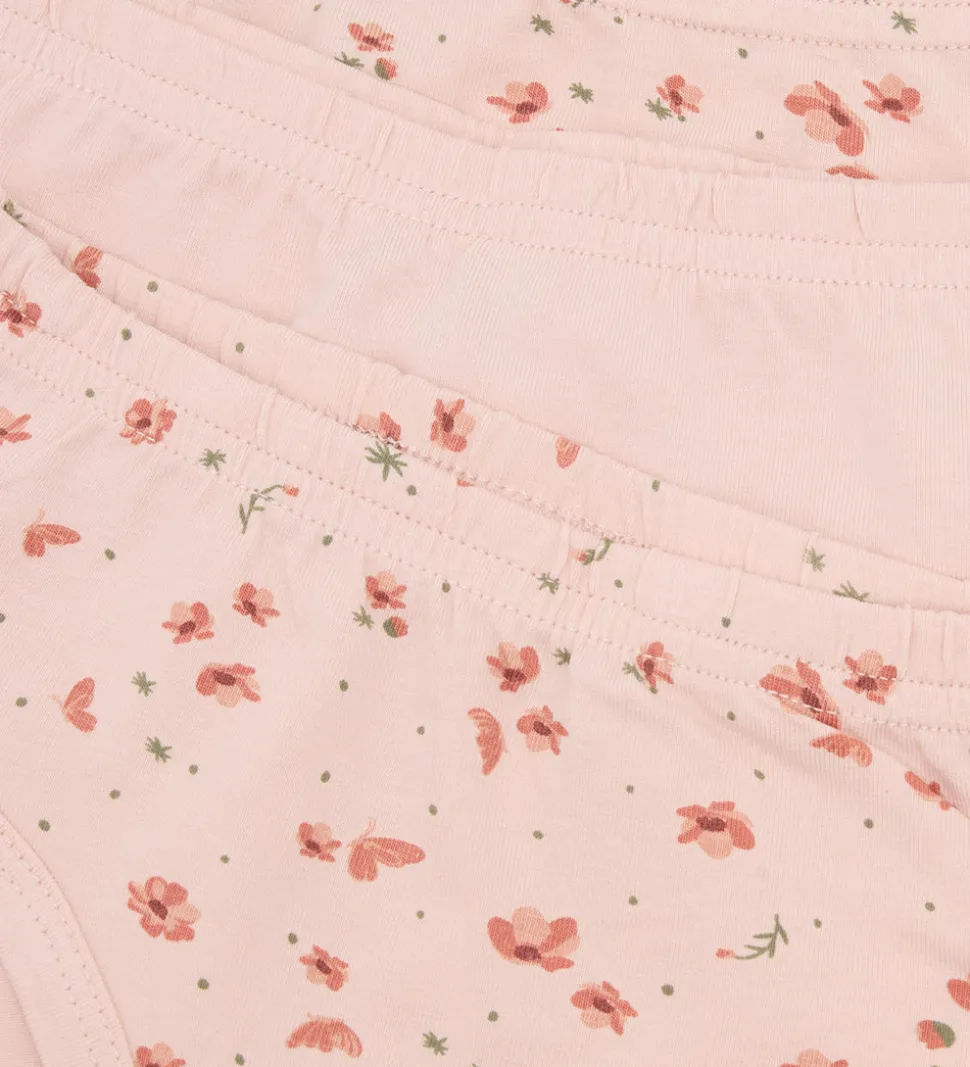Charmerende CeLaVi trusser solgt i en 3-pak. Et par er ensfarvet rosa, mens de to andre par er rosa med blomsterprint i rosa og grønne nuancer. CeLaVi trusserne har en elastikkant i livet, der sikrer en god pasform.