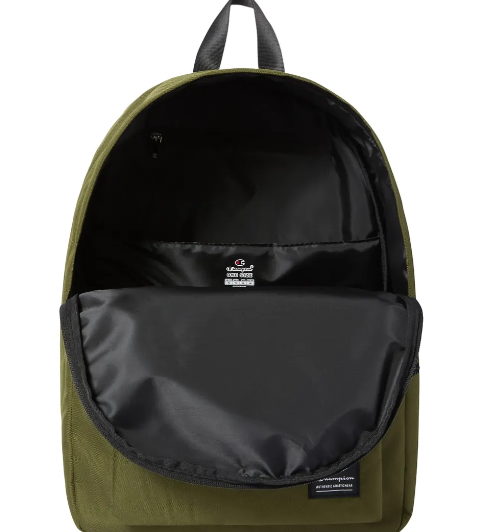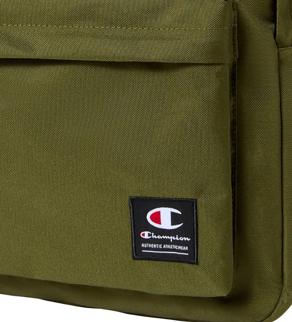 Flot Champion rygsæk i olivengrøn med et logopatch nederst.