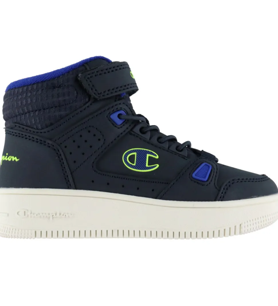Flotte Champion støvler i sort med detaljer i blå. På ydersiden, hælen og velcroremmen er der logo i neongul.