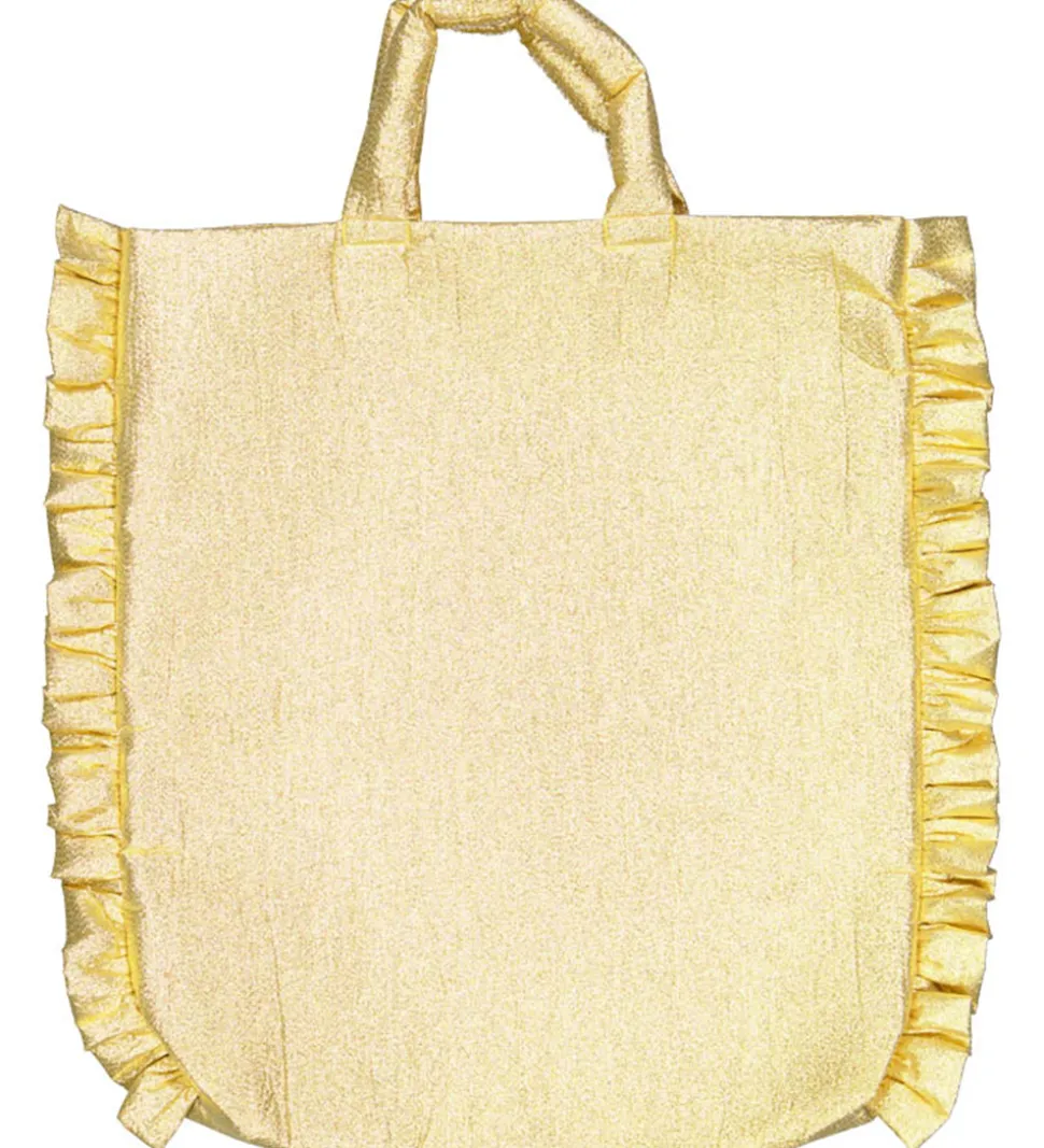 Sej Christina Rohde taske i guld glimmer med flæser i siderne.