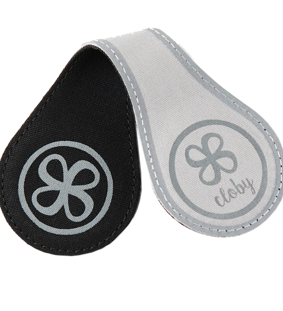 Smarte Cloby multi clips solgt som en 2-pak i sort på den ene side og grå på den anden med reflekskant. Begge multi clips har grå logoer.