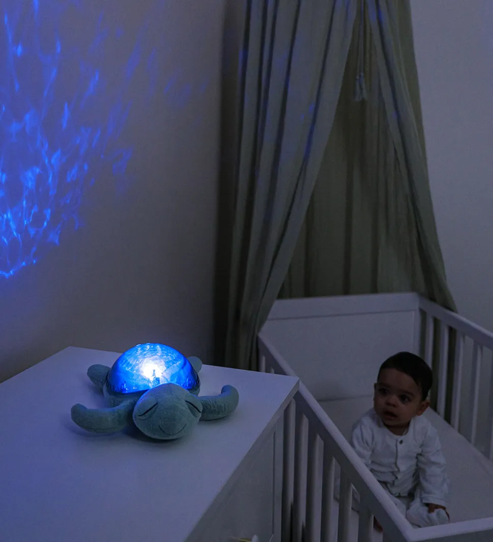 Cloud-B natlampen har forskellige afslappende effekter, som giver barnet en god afslutning på dagen. Effekterne styres med knapper bagerst på skjoldet. Natlampen kan projekterer en undervandslyseffekt og skjoldet gløder i en afslappende turkis nuance. Natlampen kan spille fire lyde, hvoraf to er rolige melodier og to er havlyde.