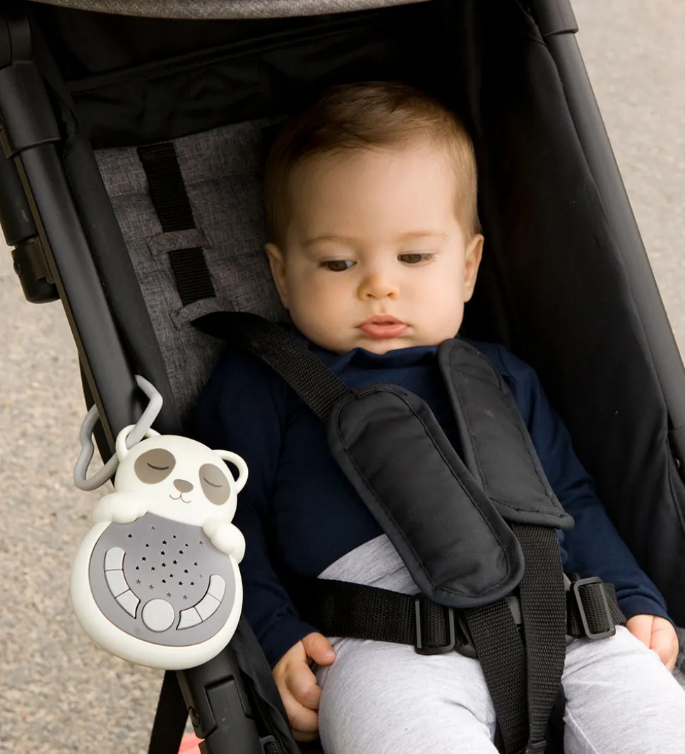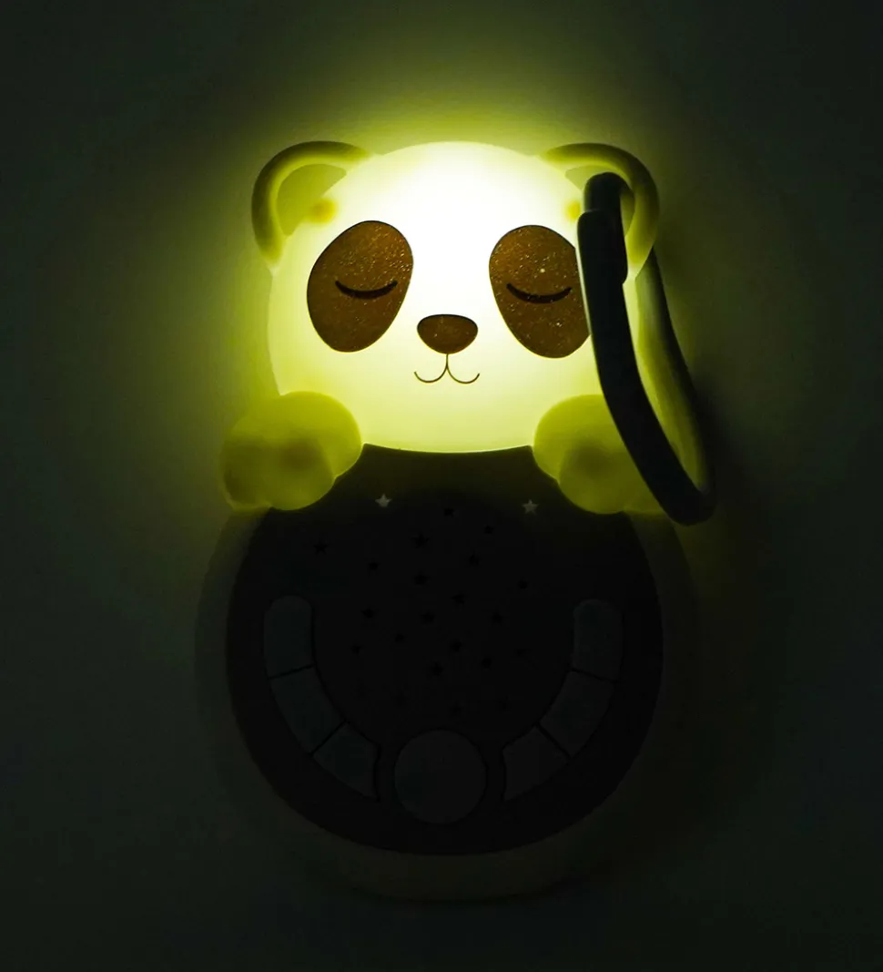 Sød Cloud-B vågelampe i grå og hvid med en lille, sovende panda på toppen.