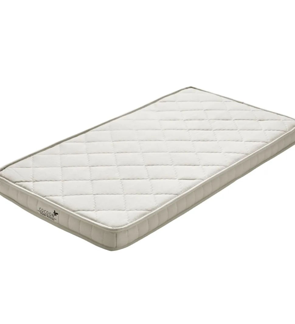 Cocoon Company madrassen passer perfekt til en babyseng. Denne madras er vendbar med naturlatex på den ene side og kokosfibre på den anden.