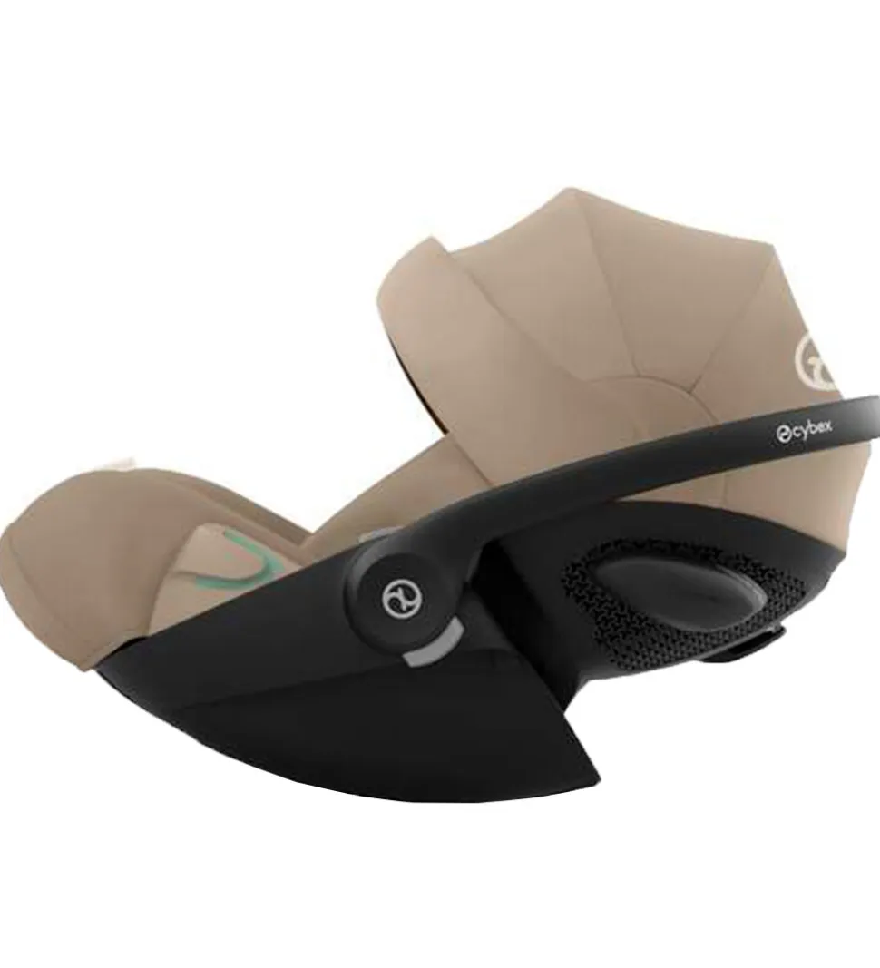 Lækker Cybex autostol i beige modellen Cloud G I-Size Plus. Betrækket på denne model er ekstra slidstærkt, samtidig med at det føles blødt mod huden. Der er ventilerende vattering og indsatser af åndbart mesh på siddeområderne, som køler, så barnet ikke så let kommer til at svede.