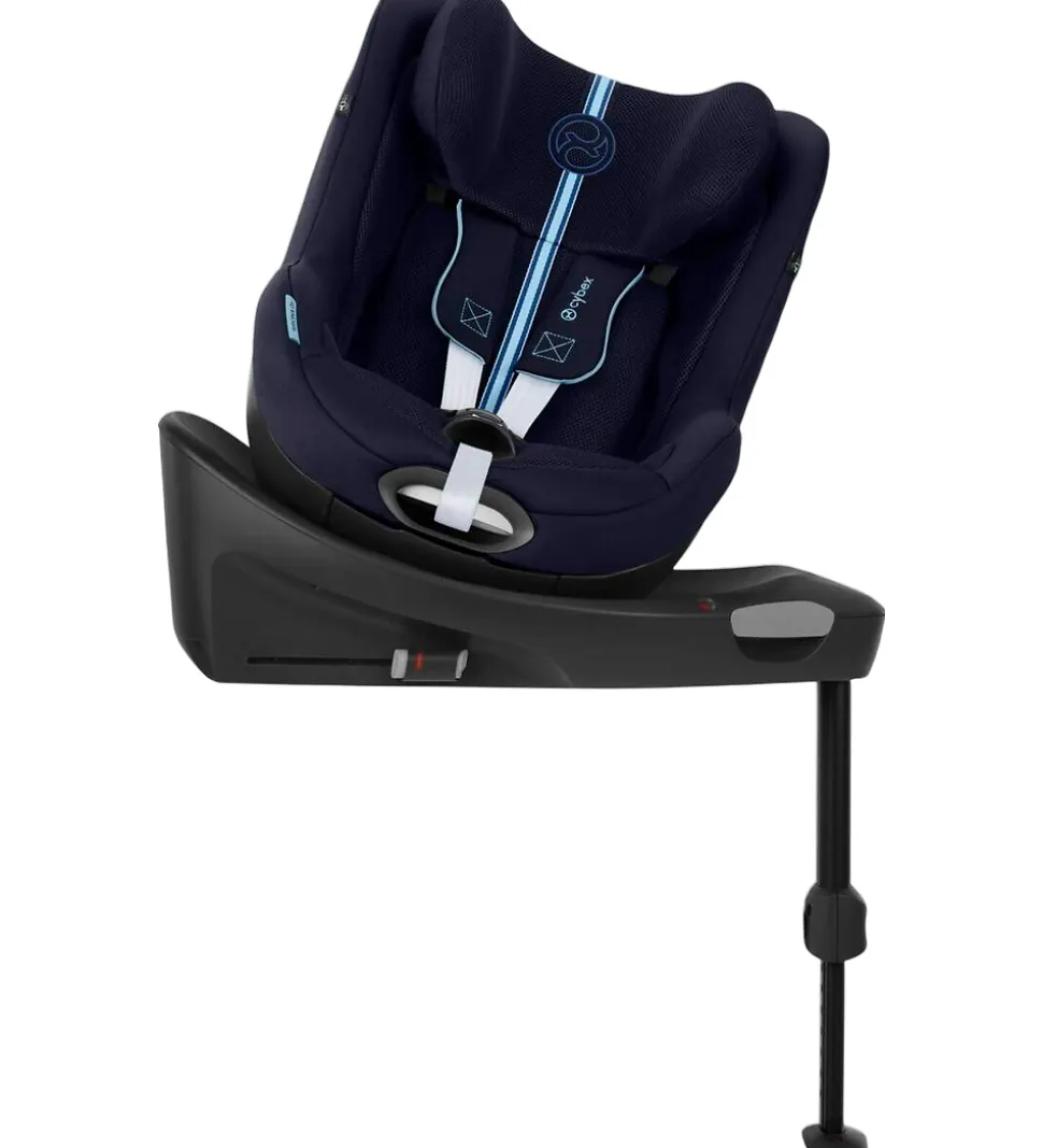 Lækker Cybex autostol i navy i modellen Sirona Gi i-Size Plus. Betrækket på denne model er ekstra slidstærkt, samtidig med at det føles blødt mod huden. Der er ventilerende vattering og indsatser af åndbart mesh på siddeområderne, som køler, så barnet ikke så let kommer til at svede.