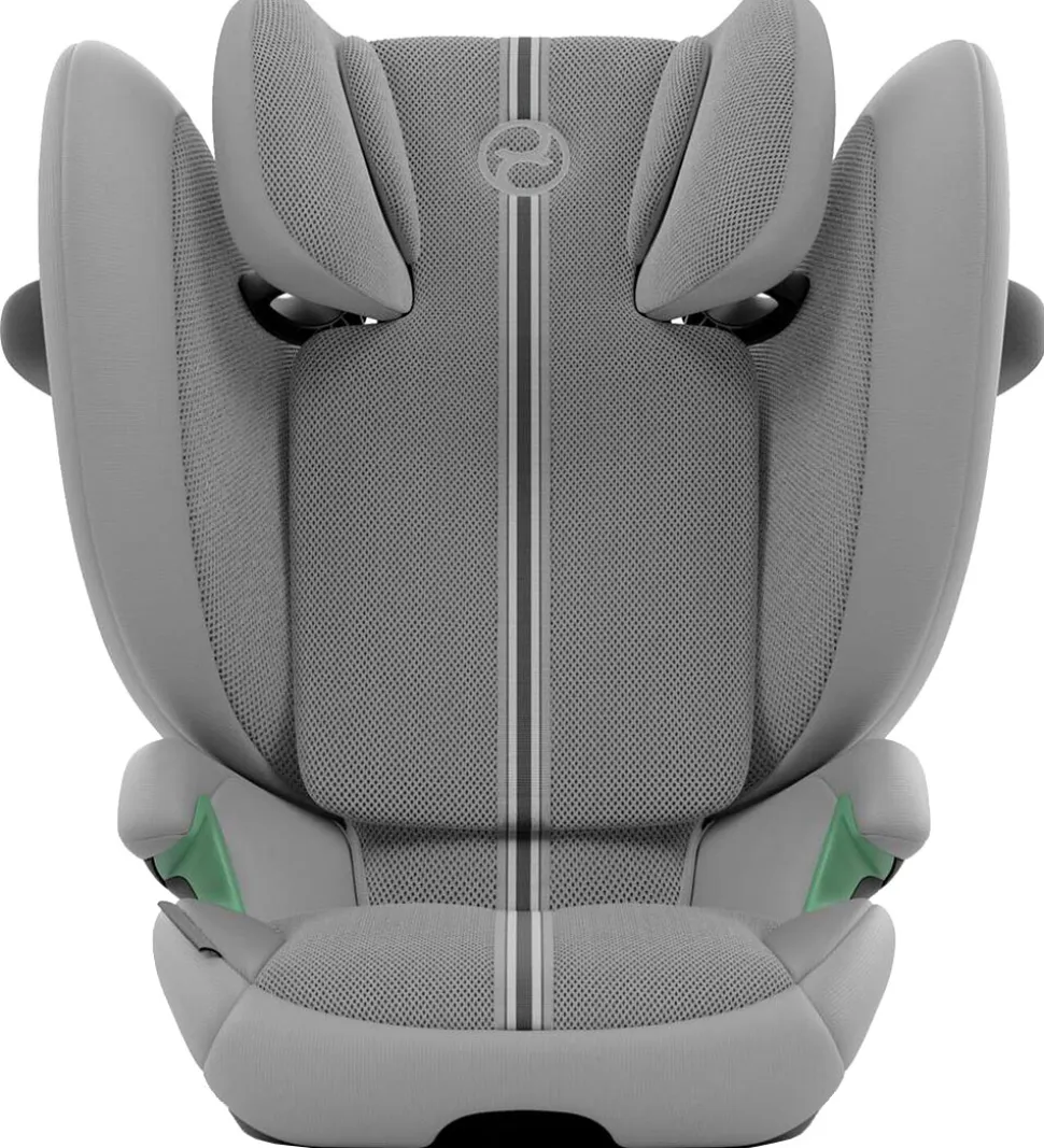 Fin Cybex autostol i koksgrå i modellen Solution G2 Plus. Betrækket på denne model er ekstra slidstærkt, samtidig med at det føles blødt mod huden. Der er ventilerende vattering og indsatser af åndbart mesh på siddeområderne, som køler, så barnet ikke så let kommer til at svede.