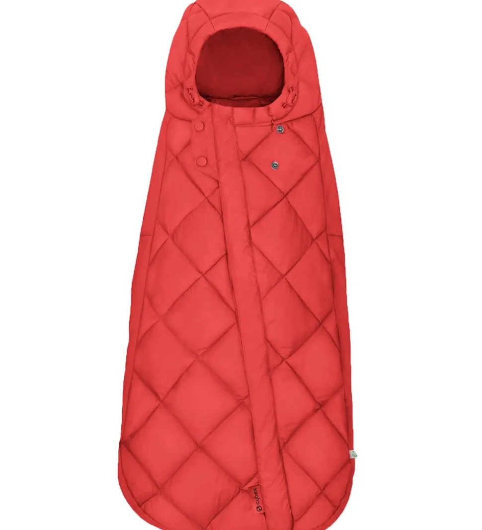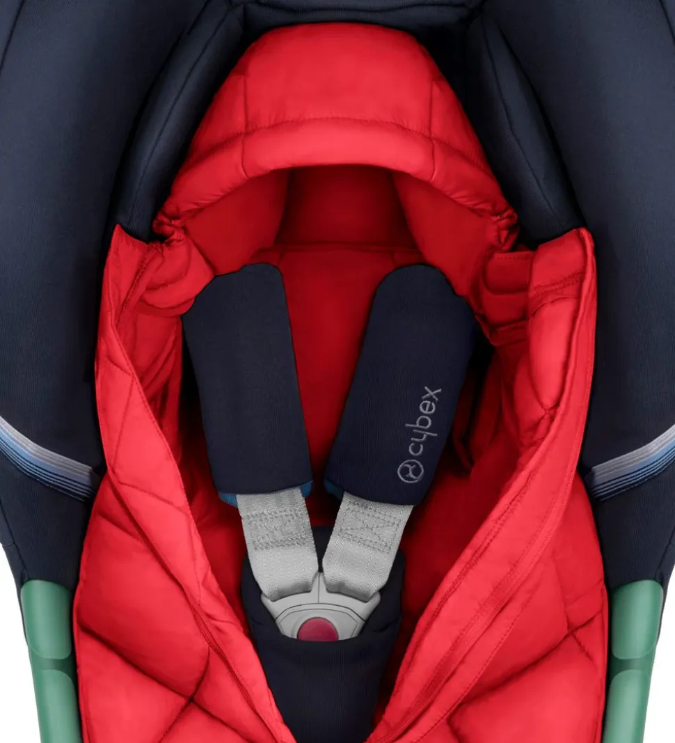 Cybex køreposen holder barnet lunt i autostolen. Køreposen åbnes fortil med en lynlås med dobbelt vindstolpe, og i toppen lukkes den til med to trykknapper. De to trykknapper kan også holde køreposen lidt åben i toppen. Hætten kan strammes ind med en elastiksnøre i begge sider.