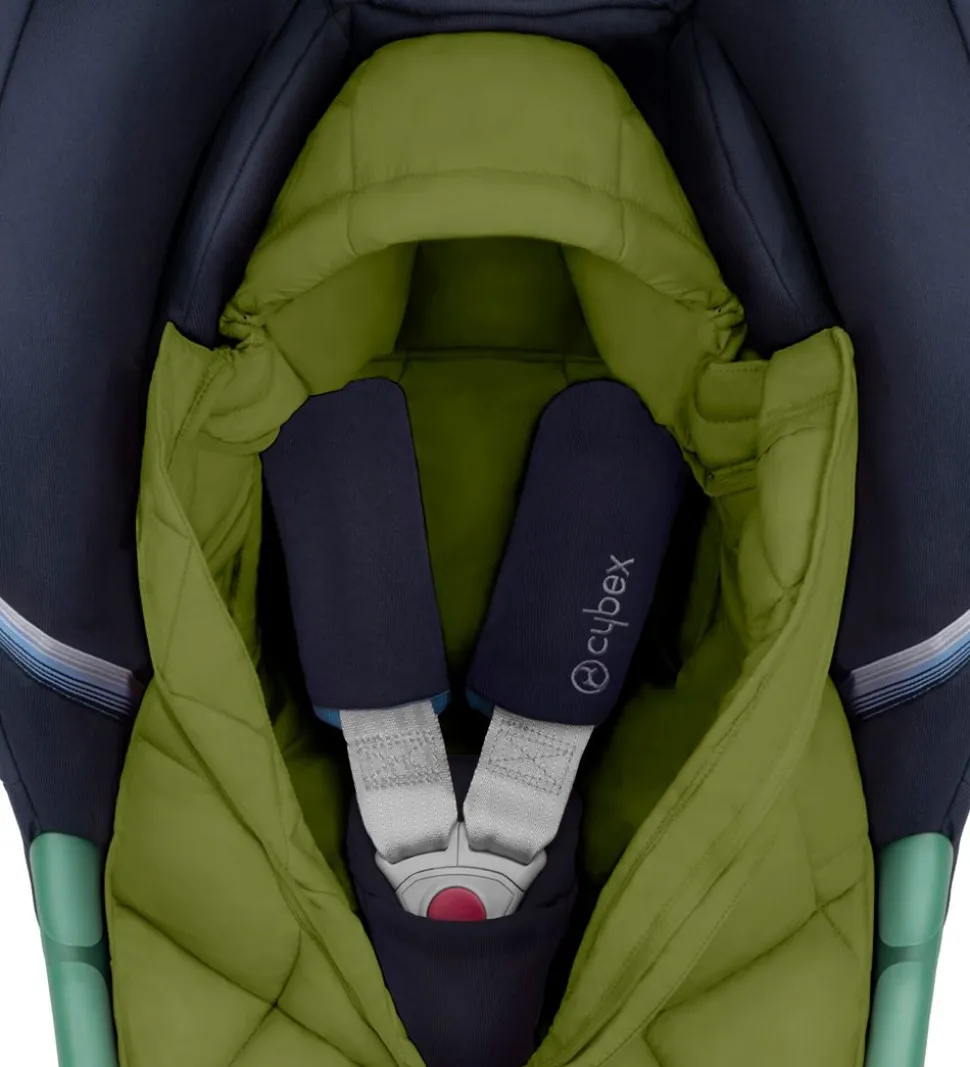 Sej Cybex kørepose i armygrøn i en glatvævet kvalitet med en quiltet struktur.