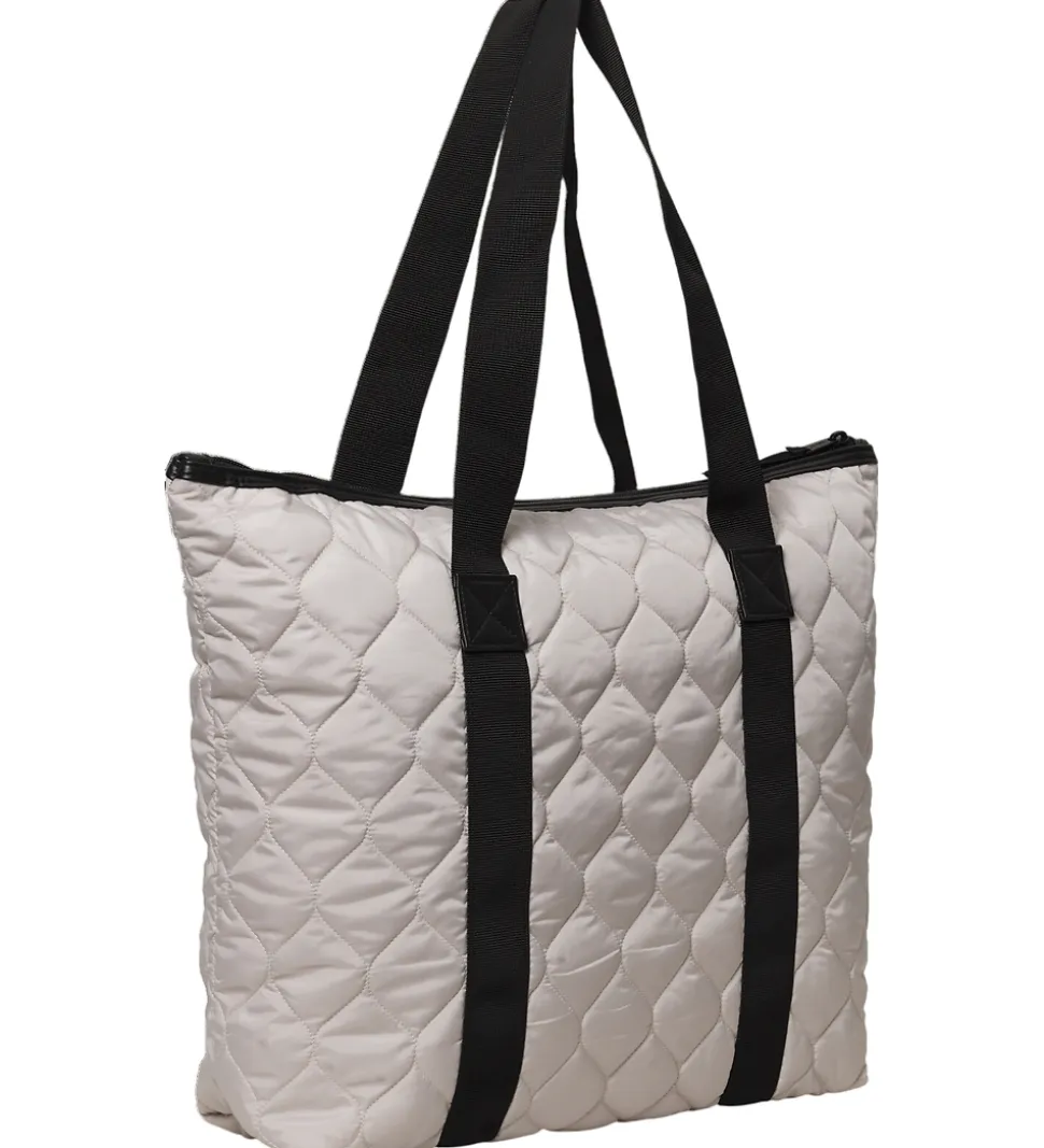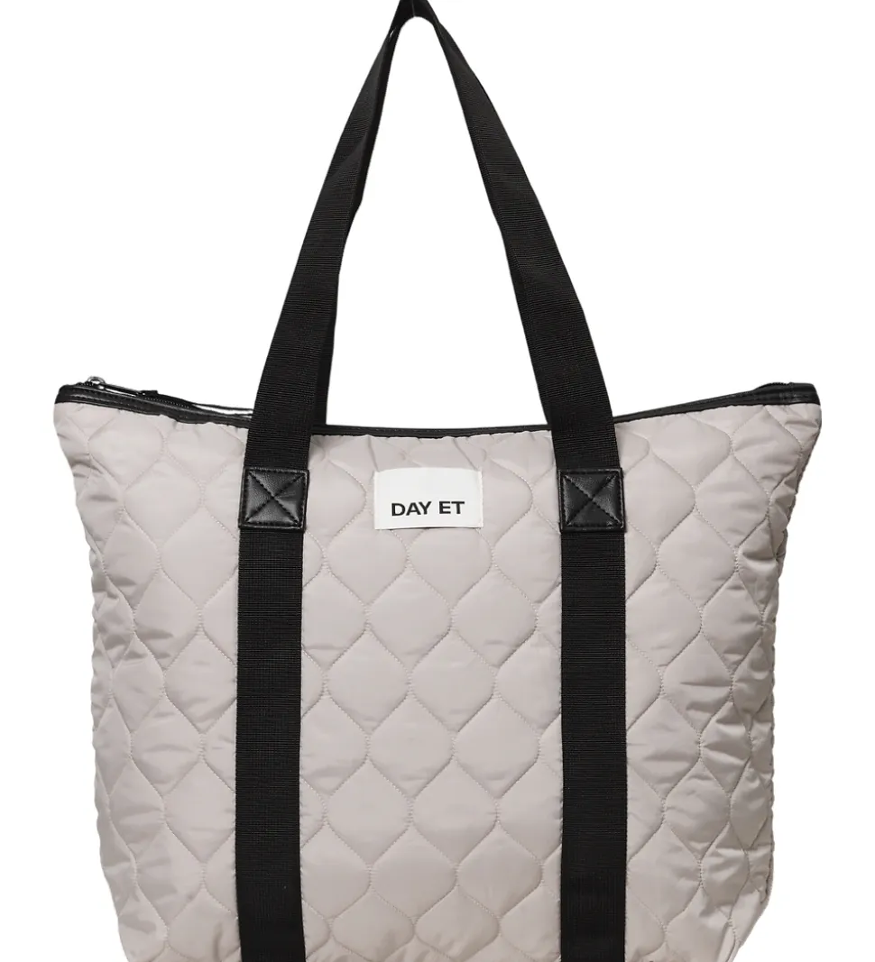 Lækker DAY ET shopper i en gråbeige nuance med en quiltet struktur og en hvid logoapplikation på fronten.