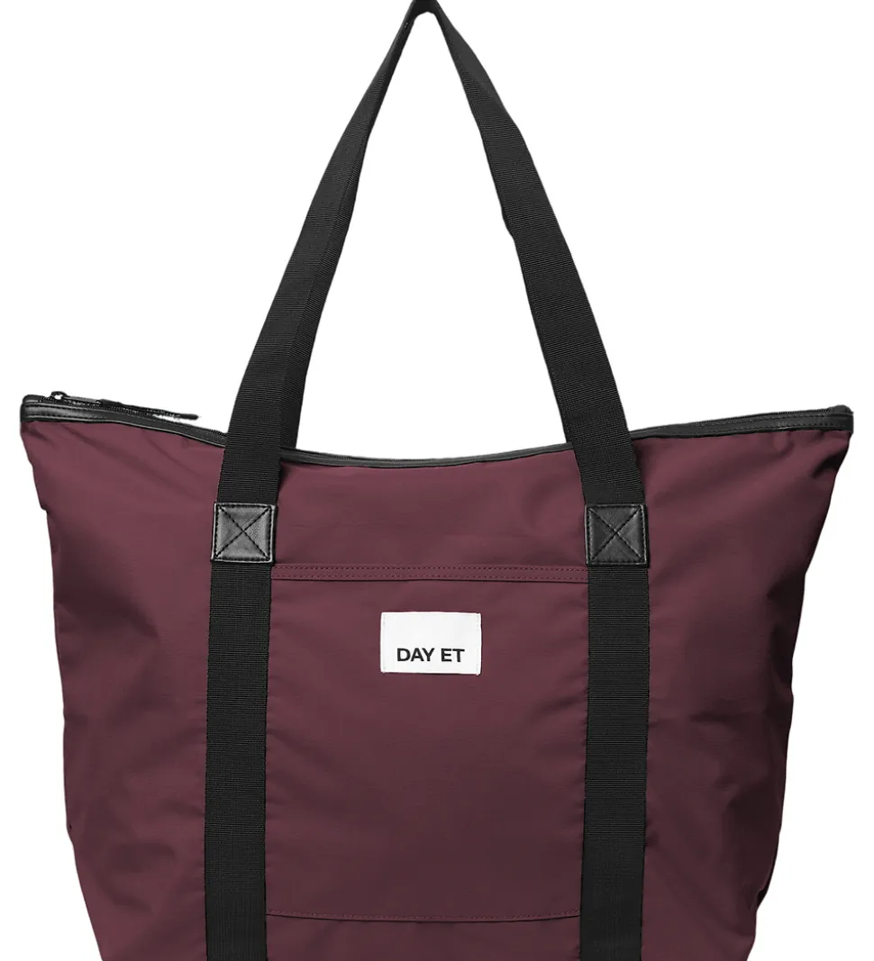 Fed DAY ET taske i bordeaux. Tasken har en applikation af imiteret læder med et stoflogo.