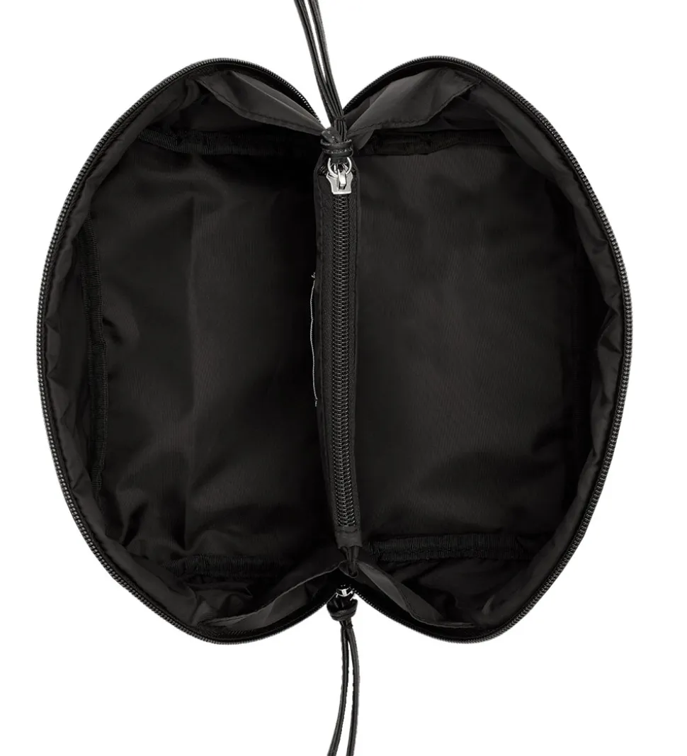 DAY ET toilettasken åbnes med en lynlås i toppen. Indvendigt er den delt op i to rum, som adskilles af en lynlåslomme i midten. Lynlåsene har et sort vedhæng i imiteret læder.