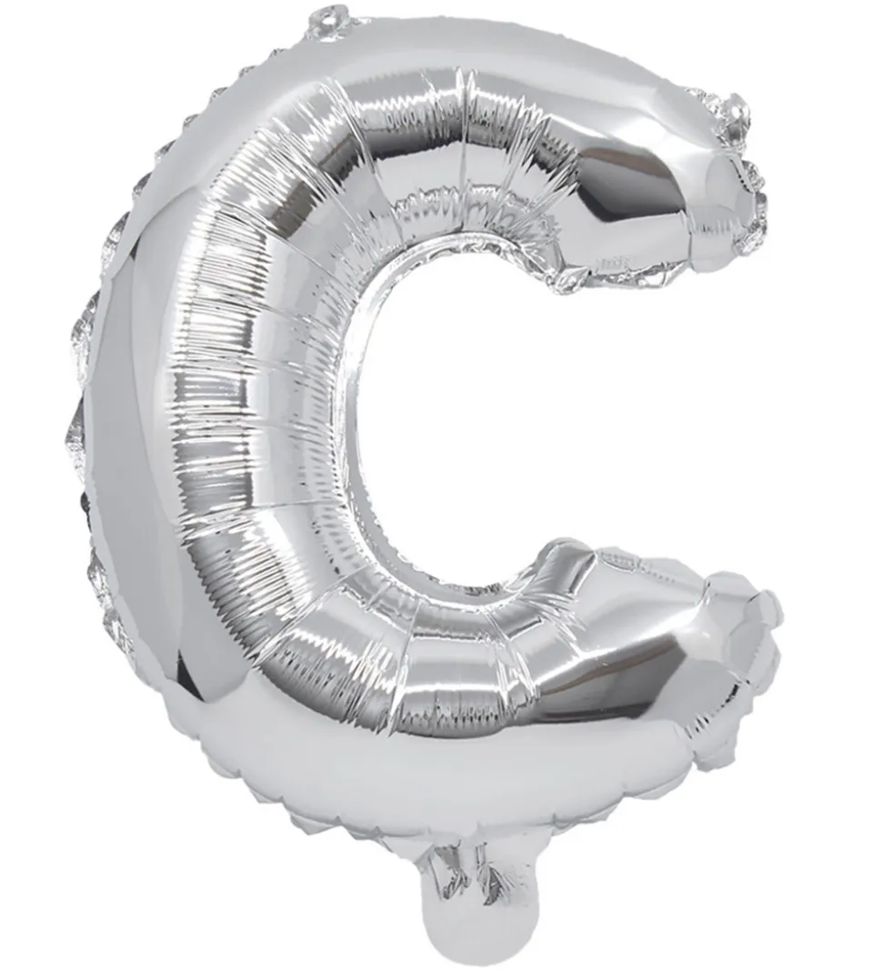Flot Decorata Party foileballon i sølv med form som bogstavet “C”.