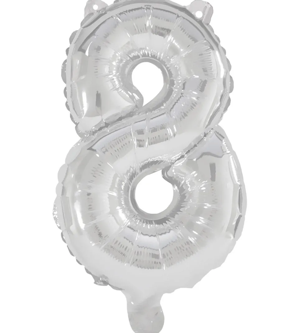 Flot Decorata Party foileballon i sølv med form som tallet “8”.