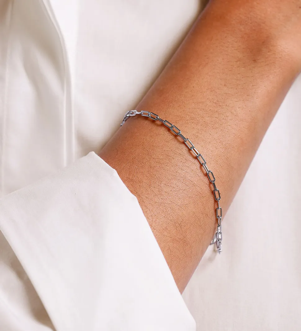 Model: Chunky Square Link Bracelet (Small), Style: 90501013SILVER