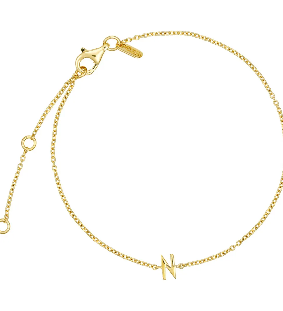 Flot Design Letters armbånd i 18 karat forgyldt, genanvendt sterlingsølv og med et vehæng formet som bogstavet N.