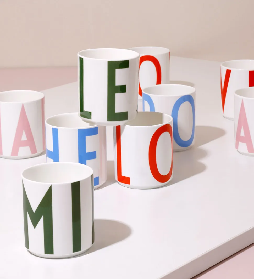 Design Letters koppen har en rund form og lige sider. Den er lavet af matglaseret benporcelæn, og dens klassiske design gør den til en god tilføjelse i hjemmet.