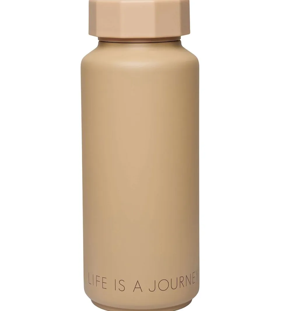 Smart Design Letters termoflaske i beige, med print af teksten “LIFE IS A JOURNEY” i bunden.
