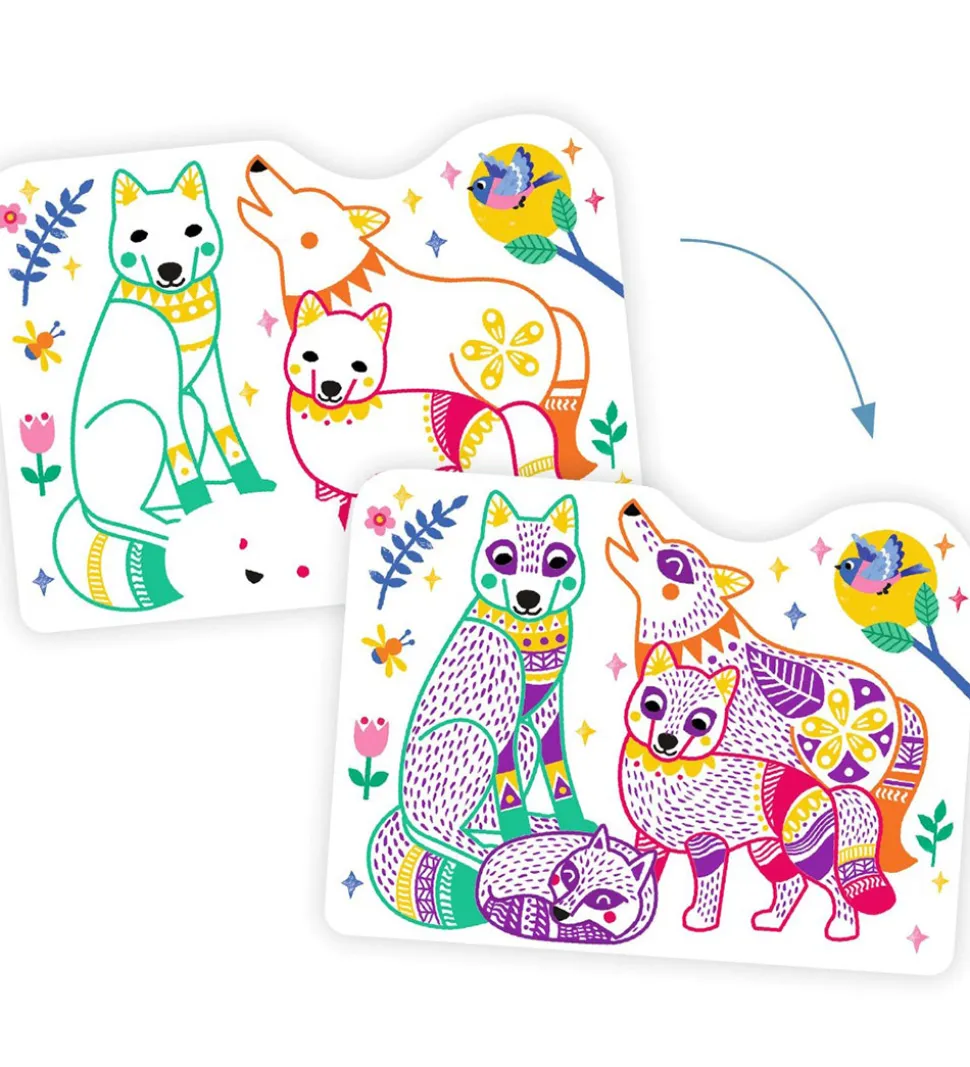 Djeco farvesættet er perfekt til de små kreative, da de kan farvelægge så vildt de vil, fordi farven kun vil lægge sig visse steder på papiret.