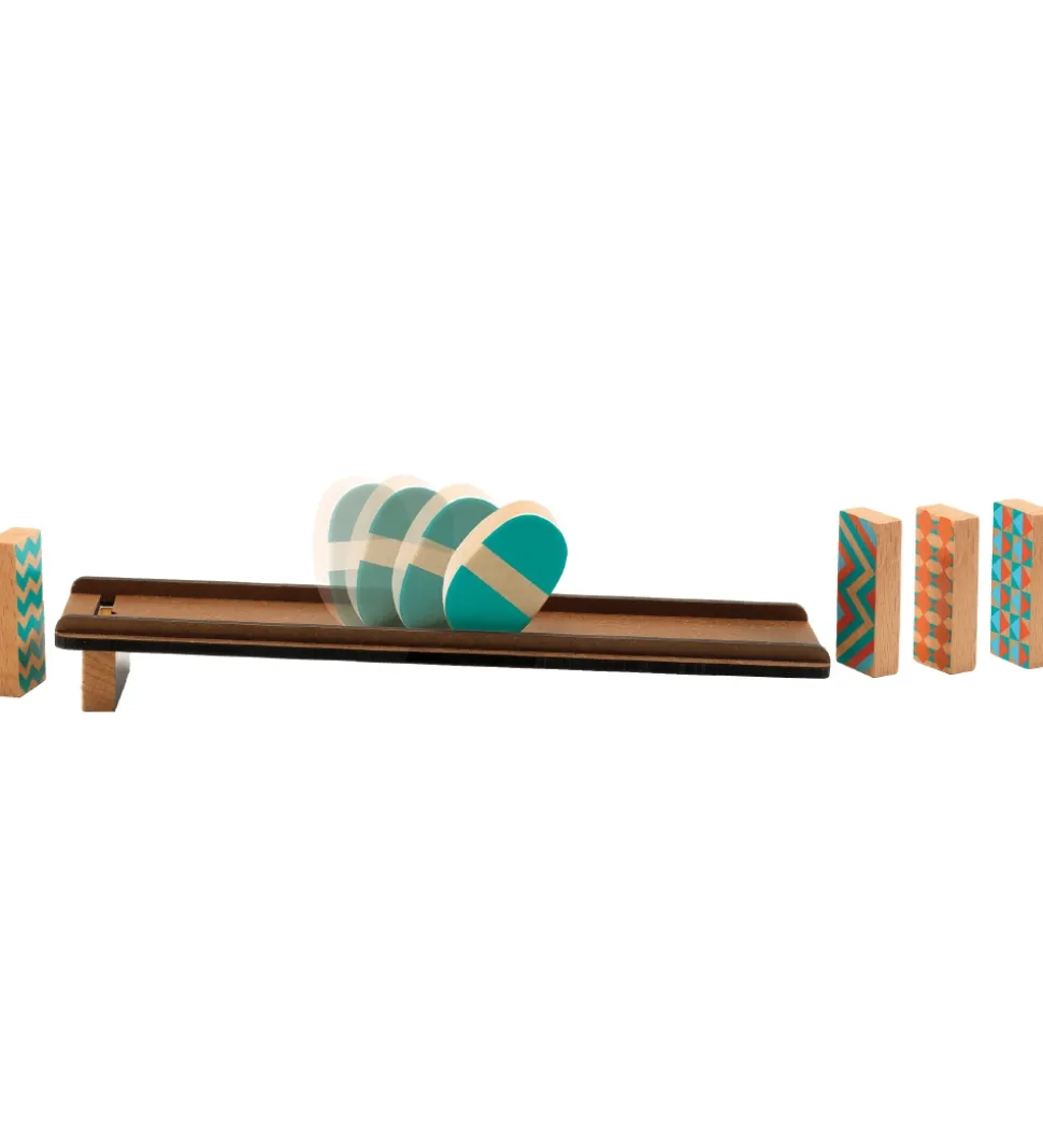 Djeco kuglebanen består af 7 dele, som skal sættes sammen til en bane. Spillet indbyder til mange timers sjov og opfindsomhed med at konstruere en bane og se, hvordan der bliver skabt en kædereaktion.