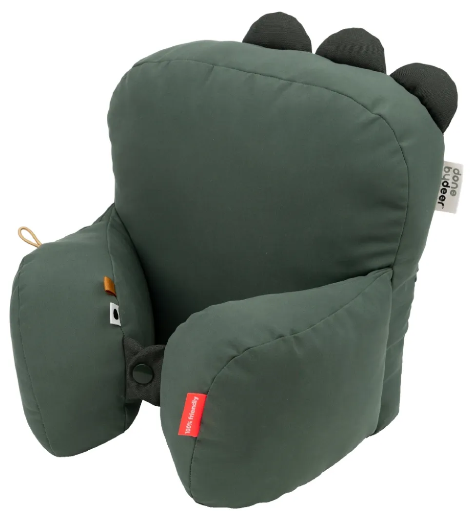 Done By Deer puden giver barnet stabilitet og støtte, når barnet sidder i barnevognen. På puderne i siden er der små flapper som barnet kan lege med, og de to sidepuder kan knappes sammen med trykknapper. Puden er vatteret og fremstillet i en blød kvalitet.