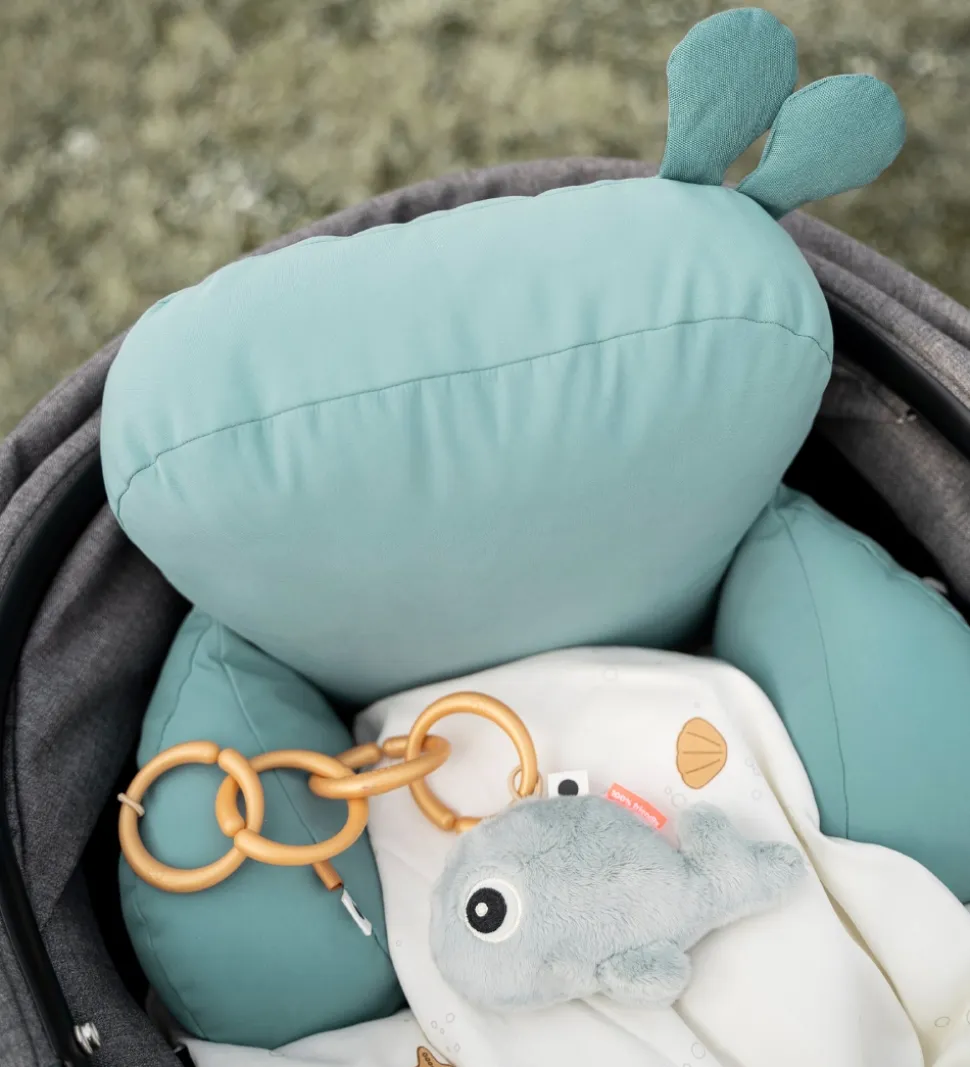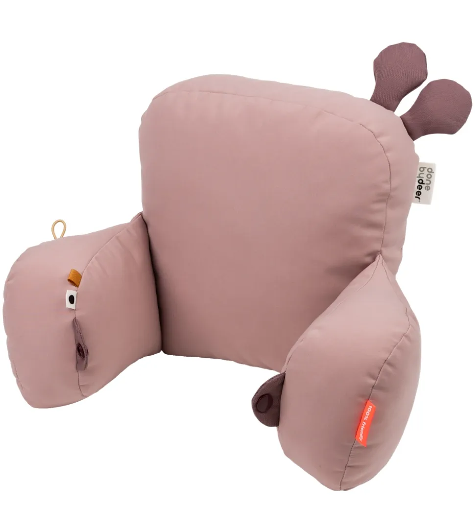 Done By Deer puden giver barnet stabilitet og støtte, når barnet sidder i barnevognen. På puderne i siden er der små flapper som barnet kan lege med, og de to sidepuder kan knappes sammen med trykknapper. Puden er vatteret og fremstillet i en blød kvalitet.