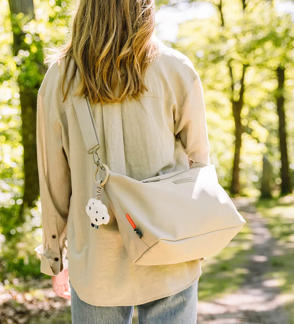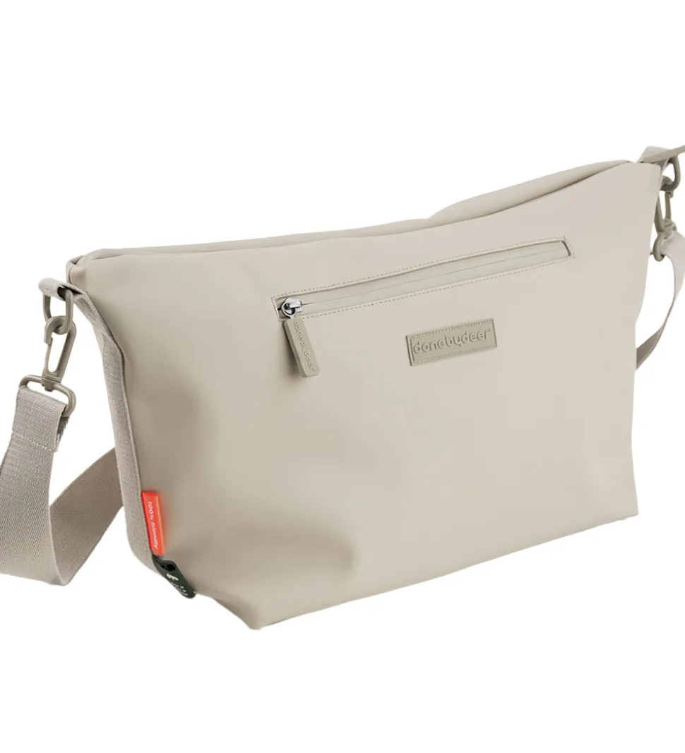 Fed Done by Deer barnevognstaske i mat beige med et diskret logo patch på den ene side.