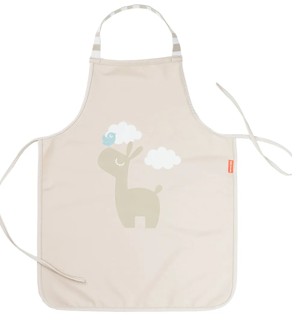 Done By Deer har bindebånd, som bindes på ryggen, og en elastikrem omkring halsen. Forklædet er perfekt til barnet, der ønsker at hjælpe til i køkkenet. Forklædet har en PU coating, der gør den vandtæt og nem at tørre af.