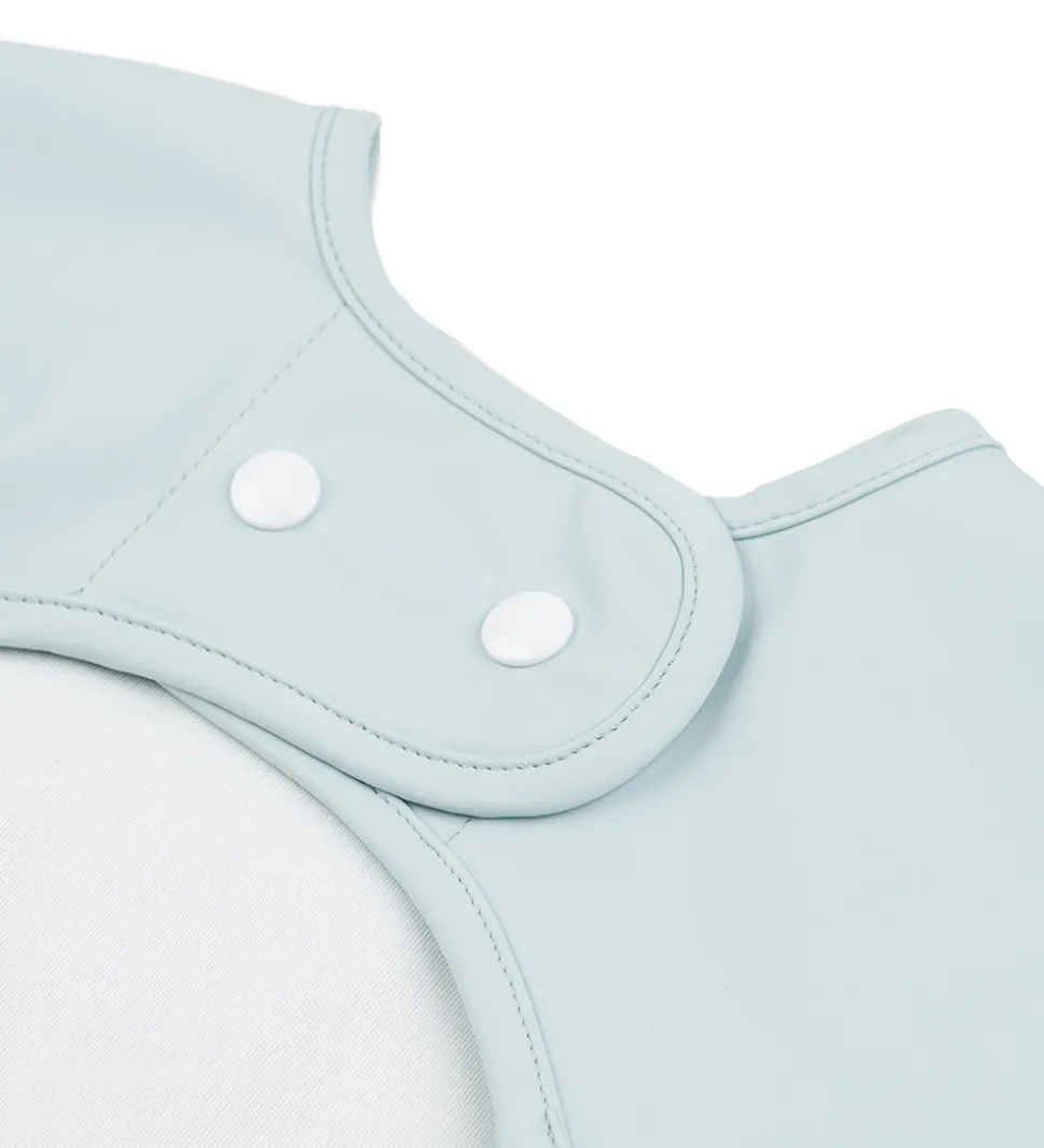 Done By Deer forklædet har lange ærmer med smalle elastikkanter, og den lukkes i nakken med to trykknapper. Hagesmækken har en PU-coating, der gør den vandtæt og nem at tørre af.