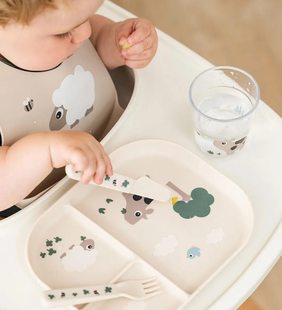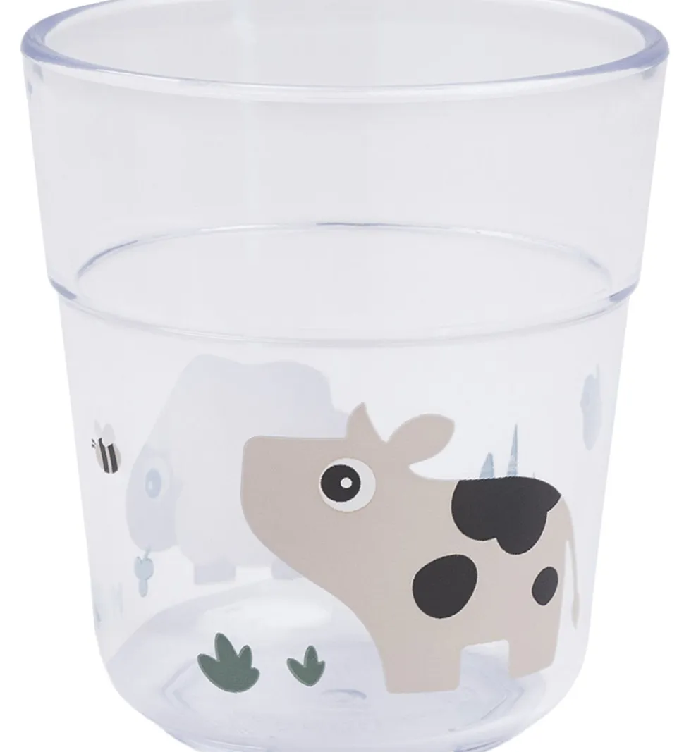 Fin Done by Deer kop i transparant plast med koen Dotti og fåret Sheepy.