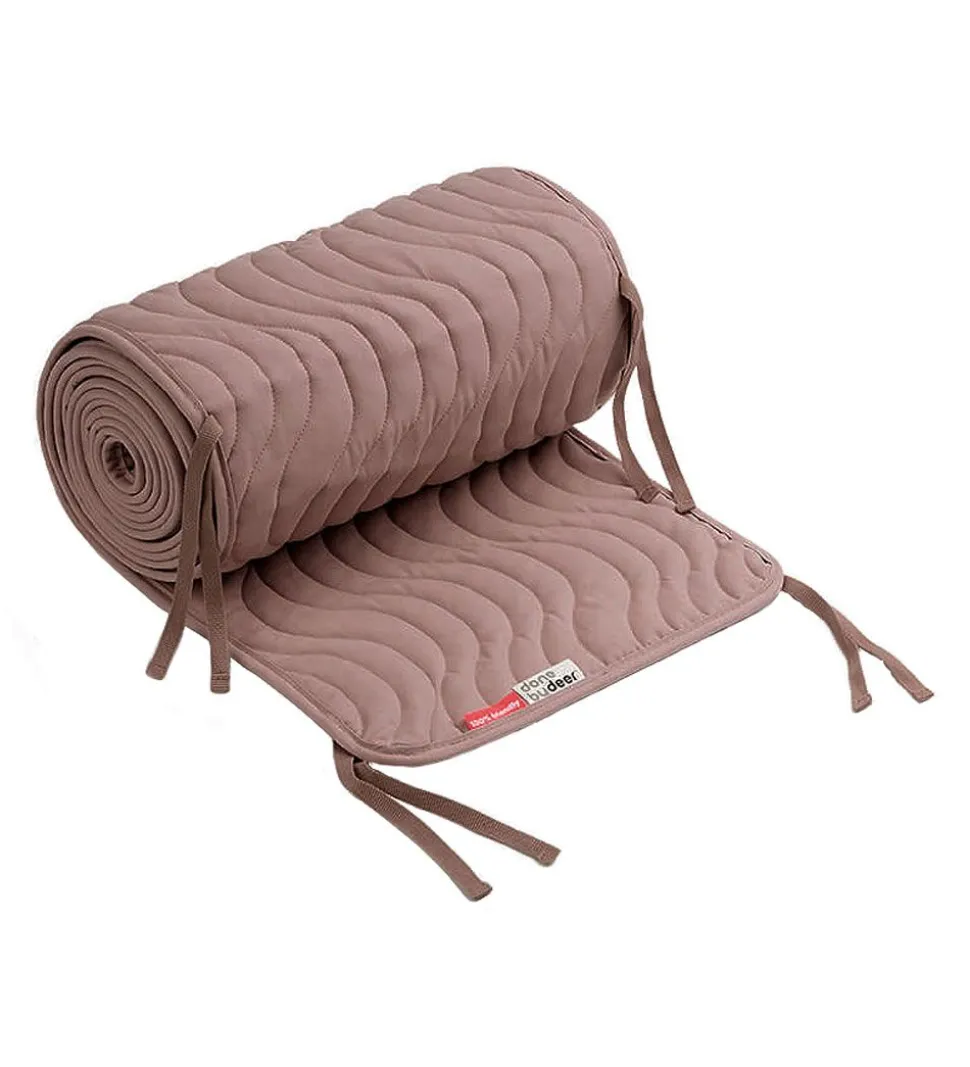 Done by Deer sengeranden kan bindes på tremmesengen for at skabe et trygt miljø til barnet. Den er blød og let, og vil være dekoratik i barnets seng samtidig at barnet ikke får benene ud mellem tremmerne eller slår sig på dem. Sengeranden passer til en standard tremmeseng på 60×120 cm.