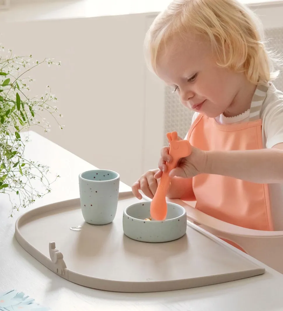 Done by Deer skeerne er tilpasset til de børns små munde. Ideelt som allerførste bestik, og dejlig nemt at gøre rent, da det kan komme i opvaskemaskinen. Bestikket tåler ligeledes at komme i mikroovnen.