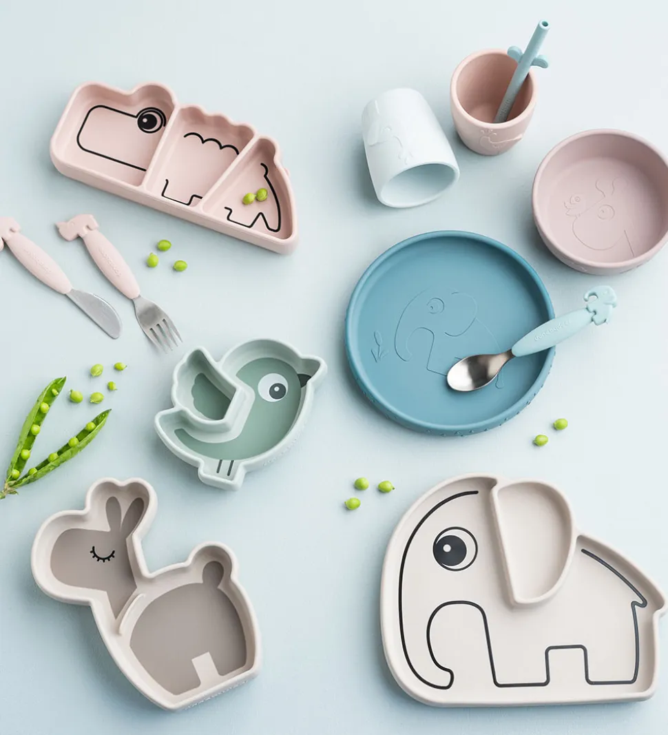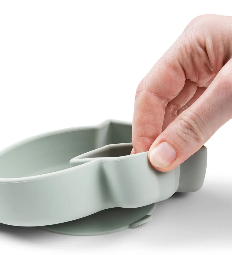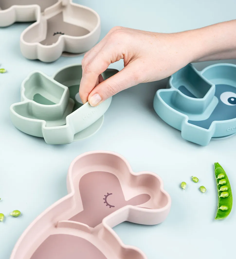 Done By Deer snacktallerkenen er lavet af silikone og har to rum. På undersiden har den en rund sugekop-flade, som gør, at den sidder godt fast på bordpladen. På denne måde er det sværere for barnet at vælte den. Snacktallerkenen har også høje kanter, så den er lettere for barnet at bruge.