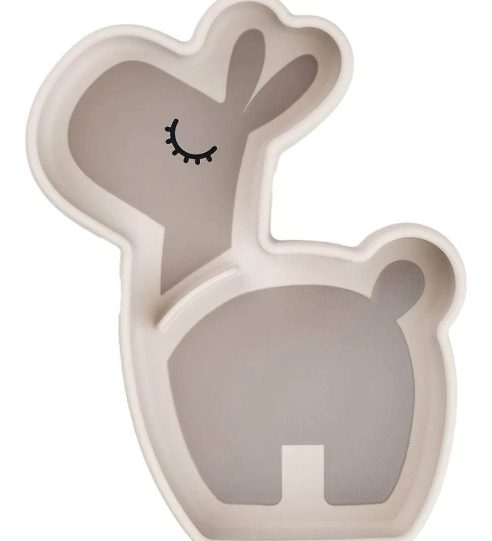 Fin Done By Deer snacktallerken i beige med form som lamaen “Lalee”. I bunden af tallerkenen er der også et print af dyret.