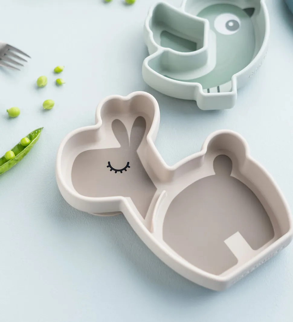 Done By Deer snacktallerkenen er lavet af silikone og har to rum. På undersiden har den en rund sugekop-flade, som gør, at den sidder godt fast på bordpladen. På denne måde er det sværere for barnet at vælte den. Snacktallerkenen har også høje kanter, så den er lettere for barnet at bruge.