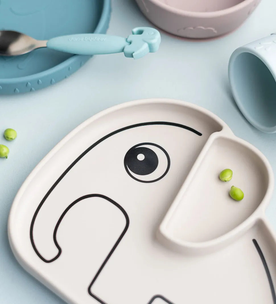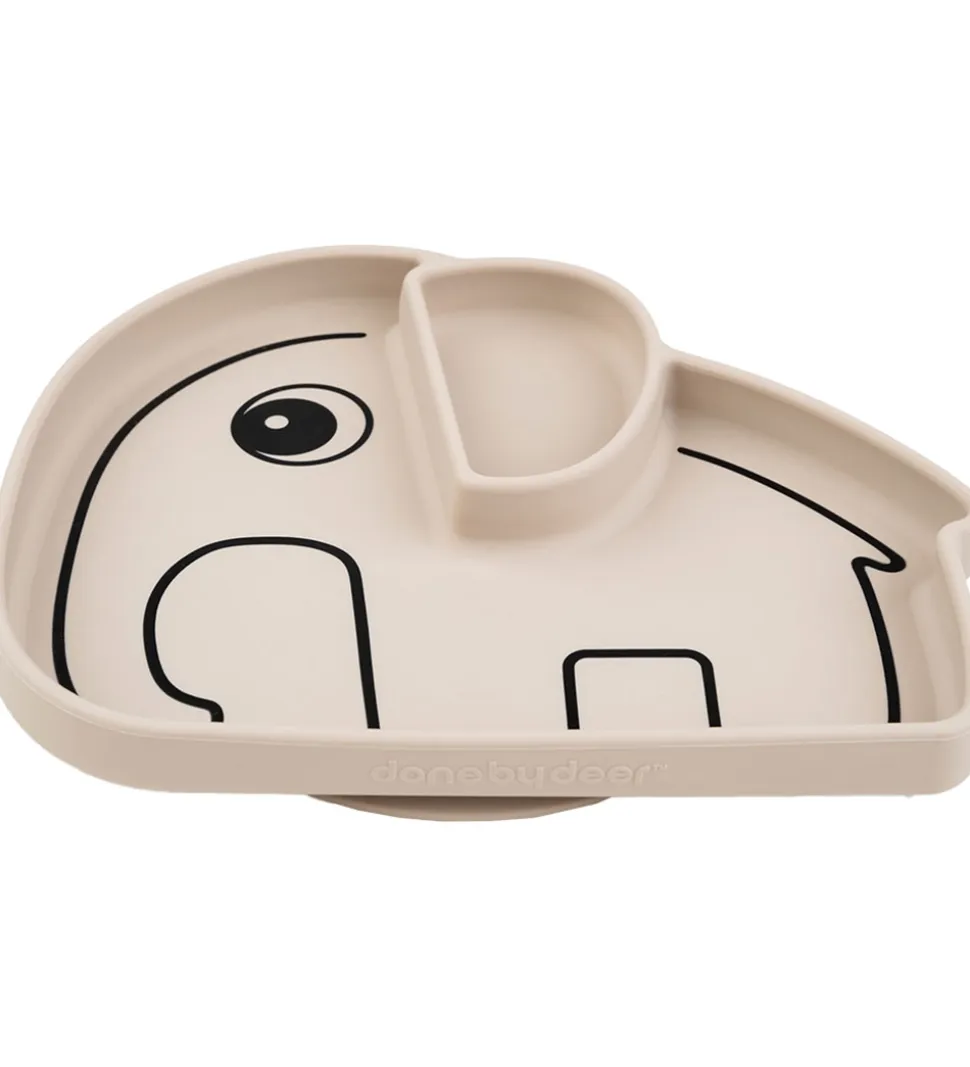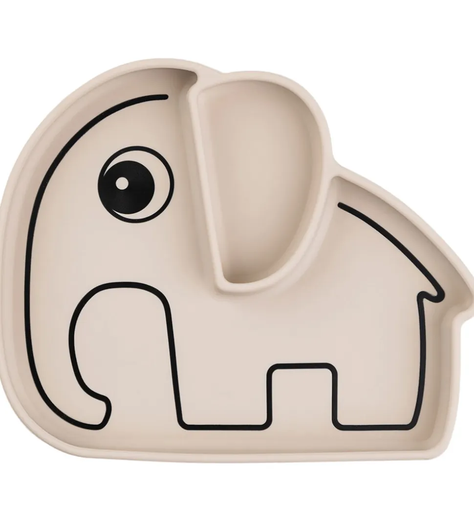 Fin Done By Deer tallerken i beige med form som elefanten “Elphee”. I bunden af tallerkenen er der også et sort print af dyret.