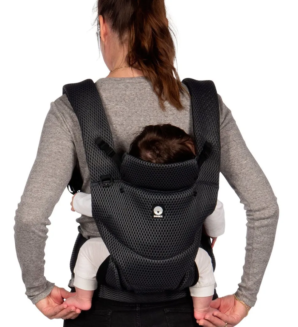 Dooky bæreselen er lavet i 3D åndbart mesh, som sørger for masser af ventilation for barnet, så det ikke bliver for varmt. Bæreselen kan foldes sammen, så den næsten ingenting fylder, og derved er nem at have med på ture og farten.