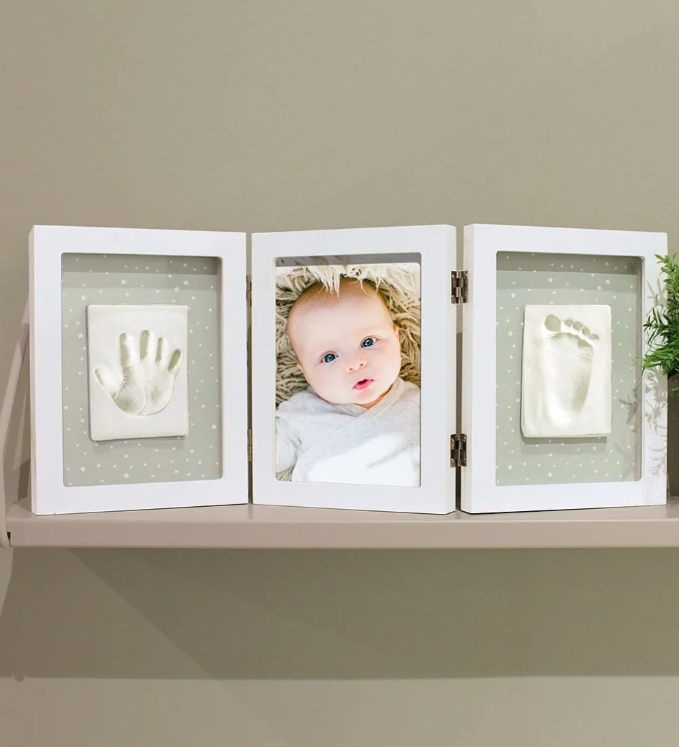 Smart Dooky håndaftryk sæt med en triple billedramme i hvid. Sætte indeholder følgende: