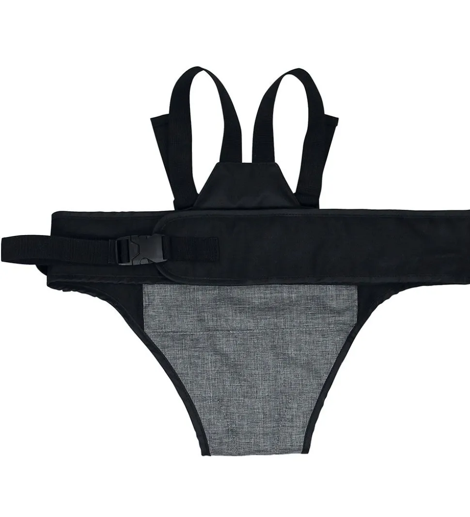 Praktisk Dooky rejsestol i gråmeleret og sort med et logo fortil.