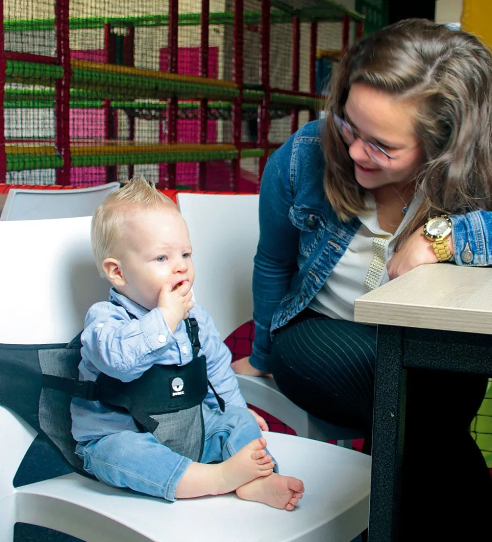 Dooky rejsestolen er supersmart til at sikrer at barnet sidder sikkert på enhver stol. Den skal spændes rundt om stolen med en bred velcrolukning, hvor der altid skal være et overlap på mindst 10cm. Herefter kan barnet kommes i og spændes fast med de to klikspænder, samt justere på stropperne i siderne, så de passer.